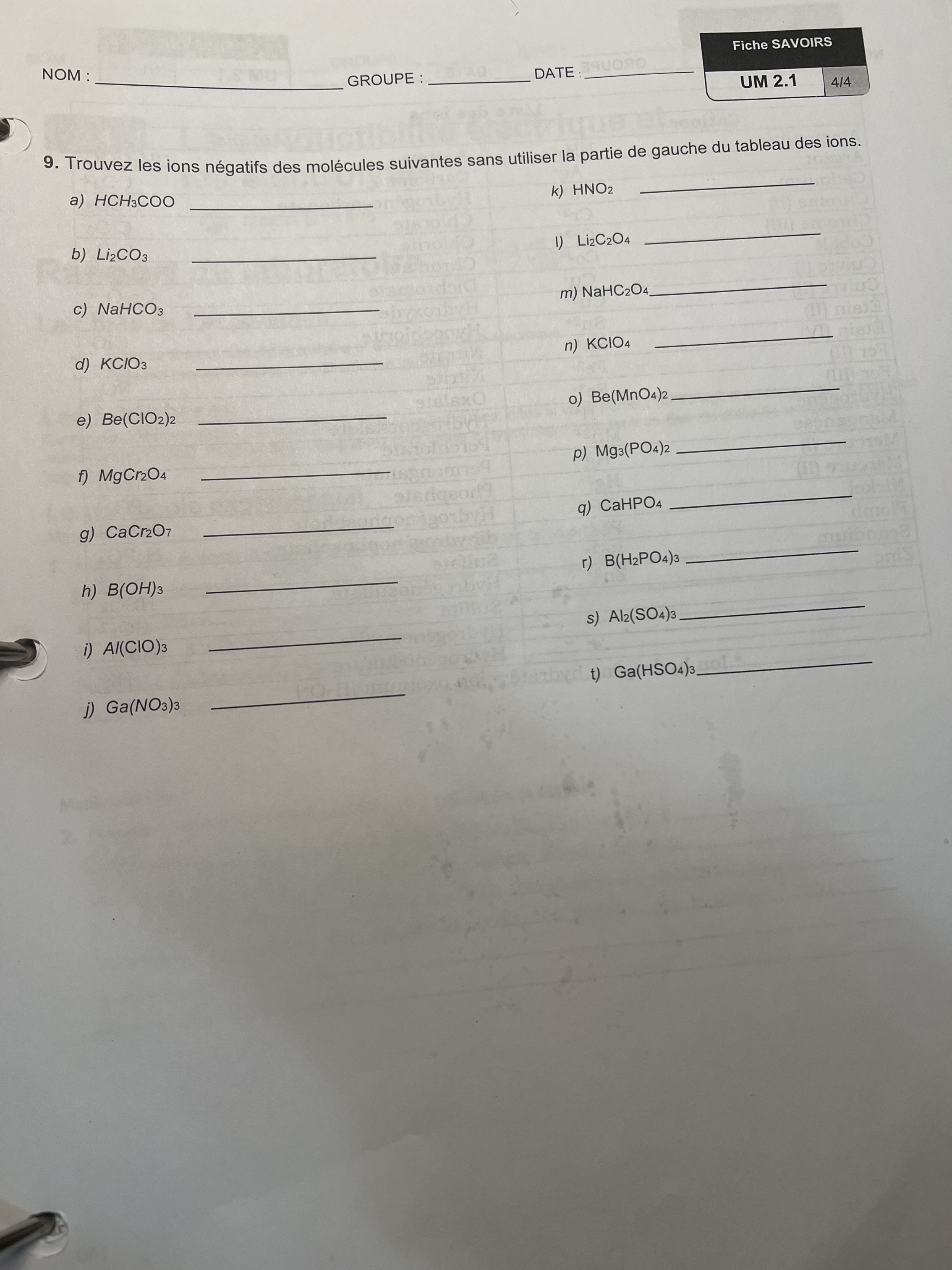 Secondaire 5 • 10mPouvez vous m'aider pour cette question de chimie sec 5 j'ai aucune idée quoi faire, j'arrive à faire aucune de ces lettres