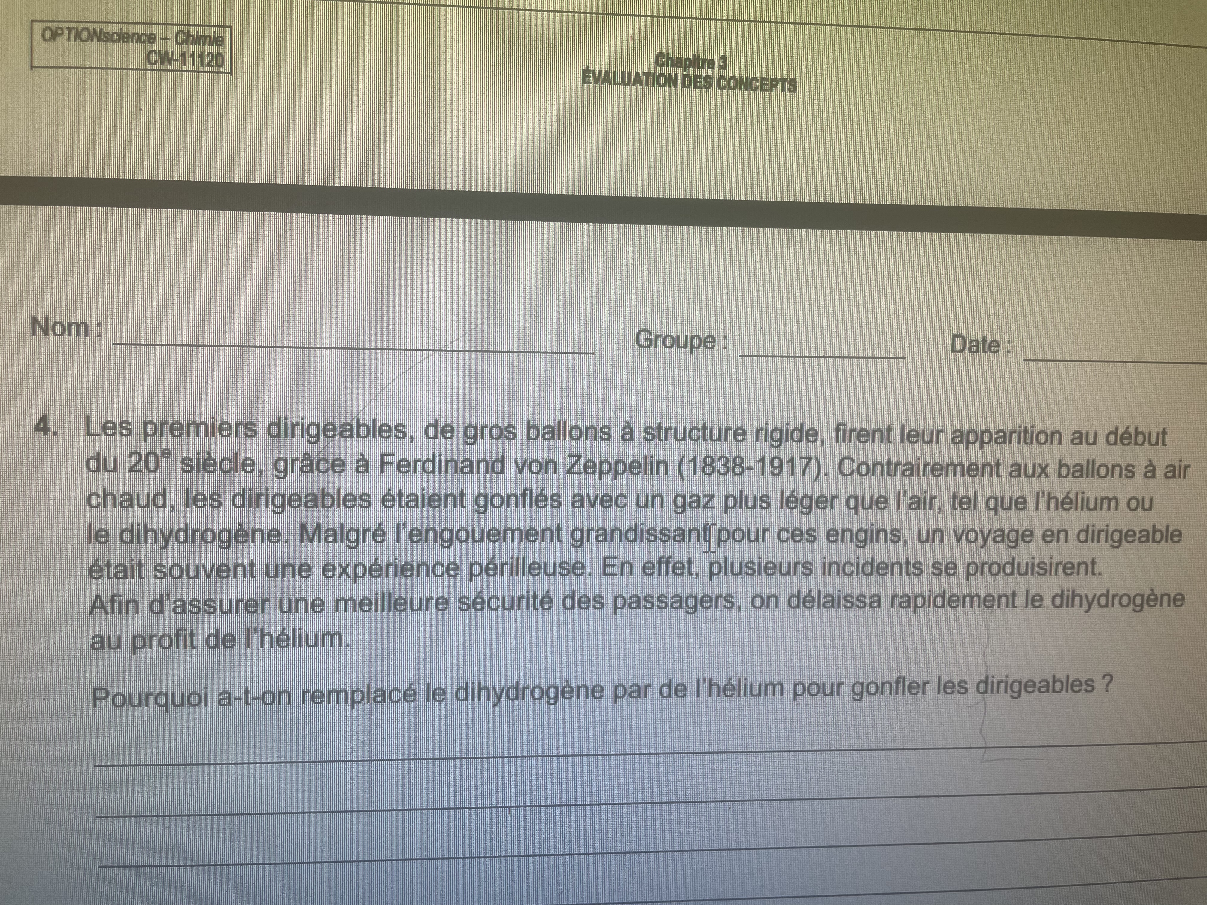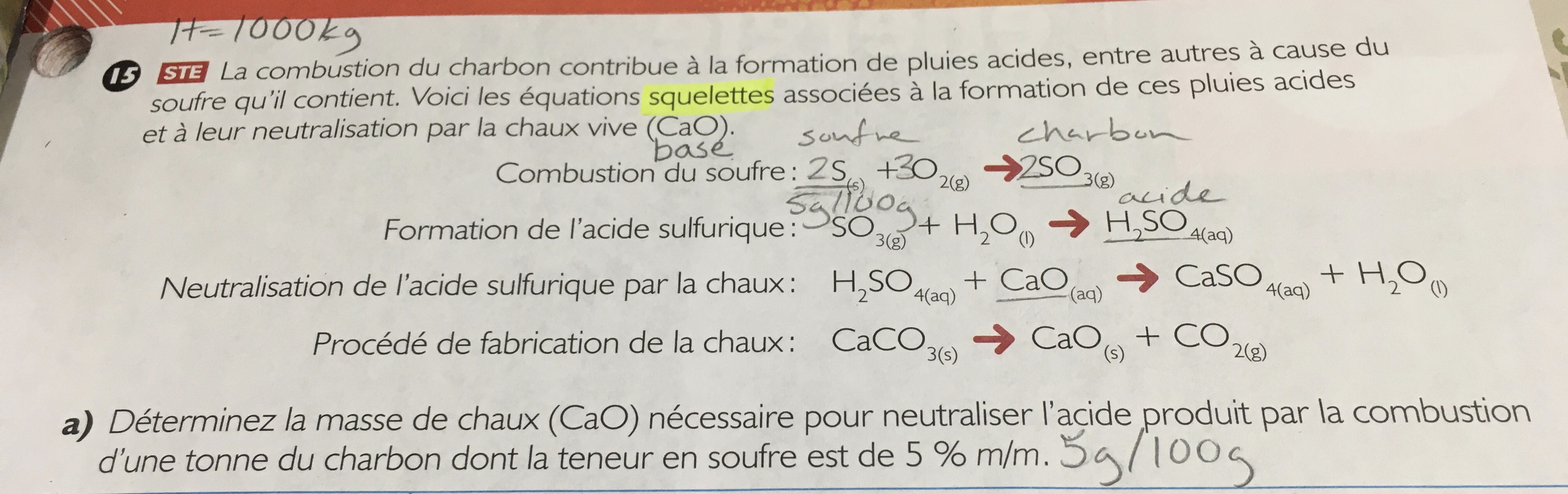 Voici une des question de mon devoir de chimie, j'ai manqué le moment pour texter ce soir...