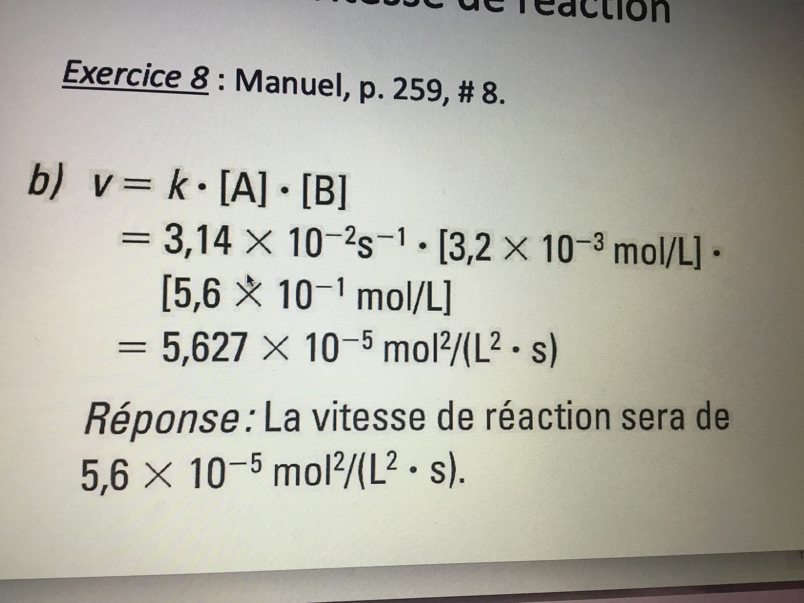 Secondaire 5 • 4aJe ne comprend pas comment il obtient mol^2/(L^2xs)