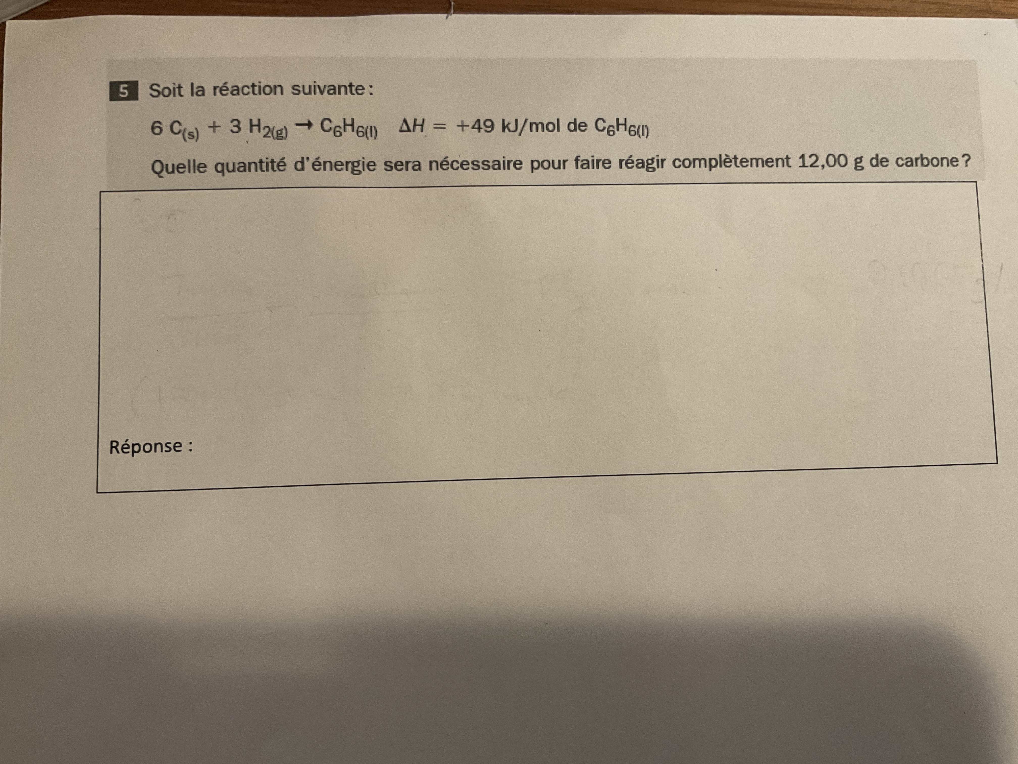 Secondaire 5 • 10mbonjour, pouvez vous m’aider avec ce problème. Je dois trouver la chaleur d’une réaction à l’aide des chaleur de formation :