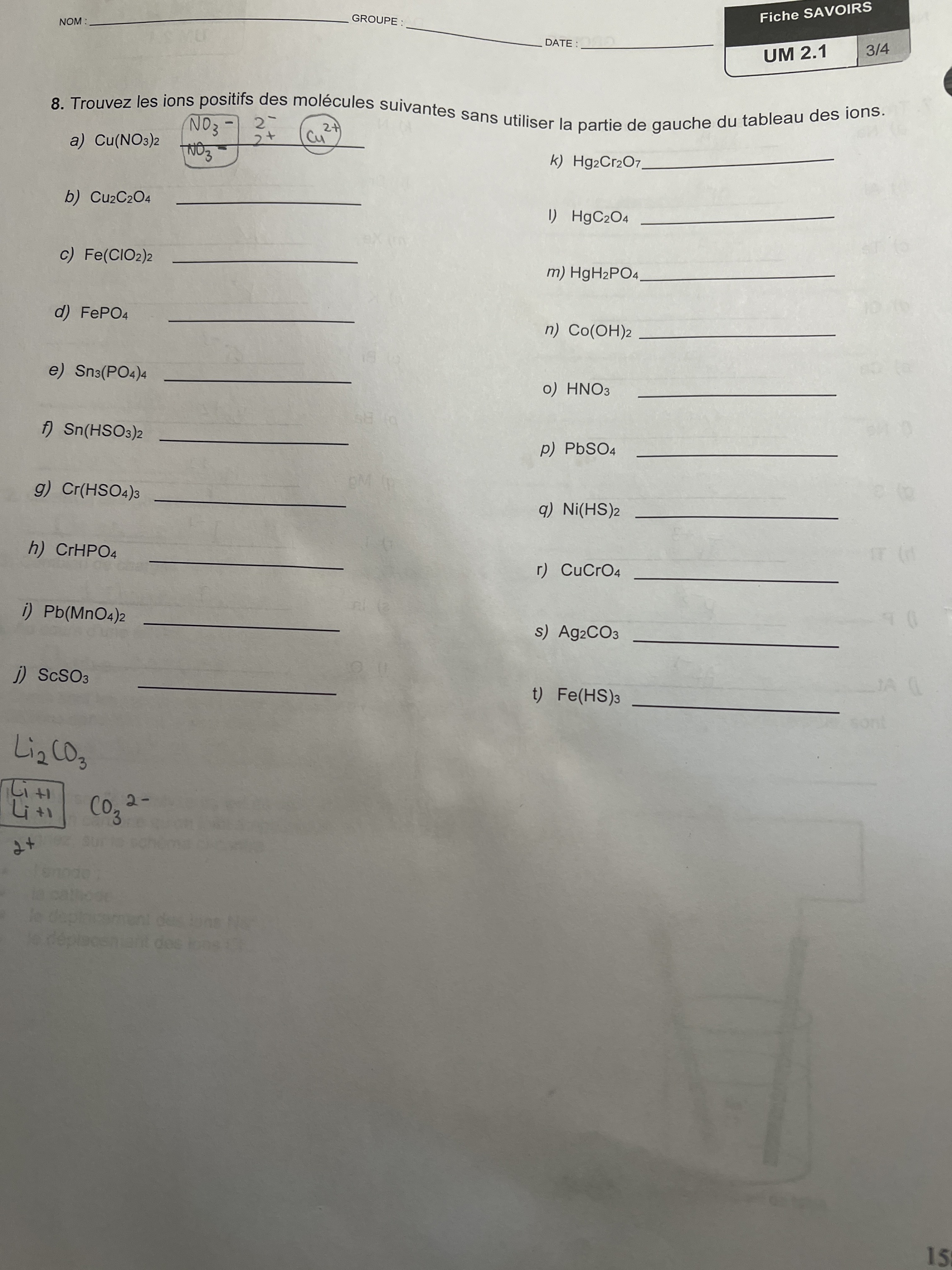 Secondaire 4 • 11mBonjour, Je ne comprends pas comment comment trouver les ions des molécules. Pouvez vous m’aider svp ? 🙏