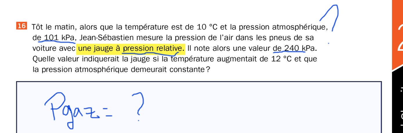 Je ne comprends cependant pas comment faire la lecture en a) de ce numéro. Le corrigé m'indique une pression de 650 kPa.