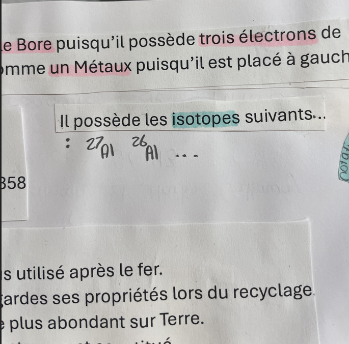 Secondaire 4 • 1aBonjour je ne sais pas trop comment trouver les isotopes et les ions de l’aluminium