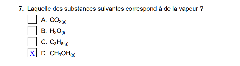 Secondaire 5 • 1aJe ne comprends pas cette exercise. Comment savoir si une molécule est à l'état liquide à température ambiante ?
