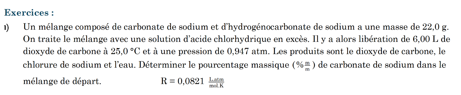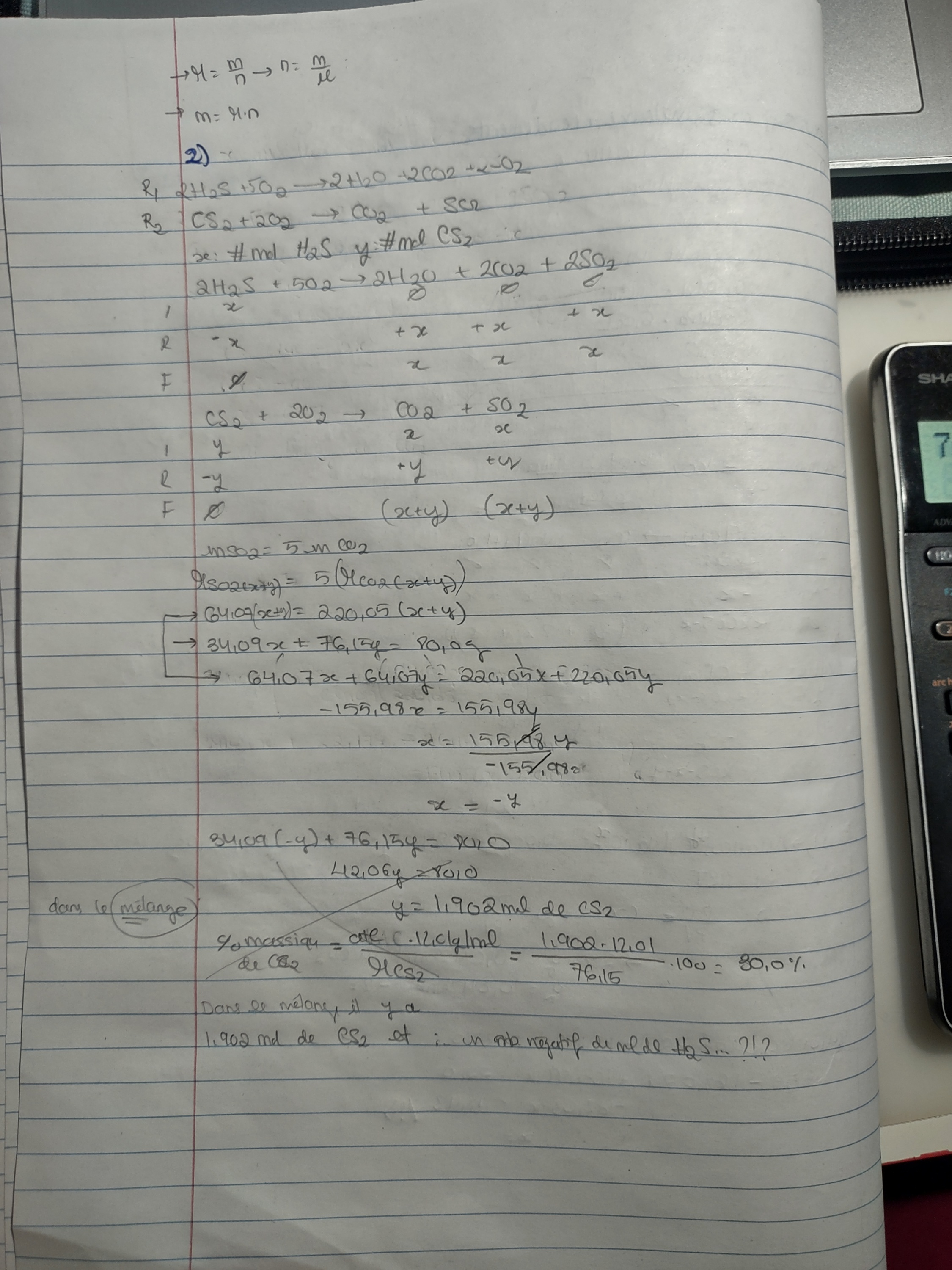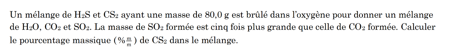 Dans cet exercice, je n'arrive pas à obtenir la qté de mol de H2S pour trouver son pourcentage massique dans le mélange, j'obtiens un nbre de mol négatif pour le H2S... ?