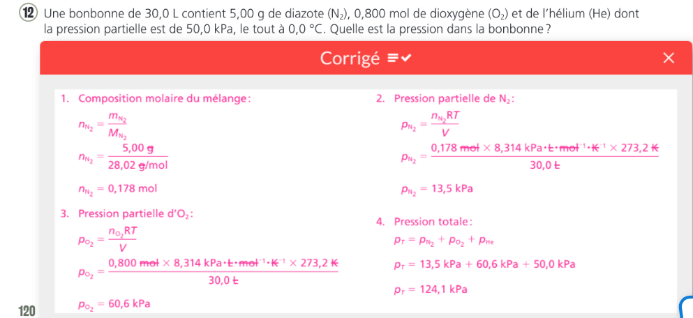 Comment sa ce fait que le dioxygène et l'héliume ait pas la même pression partielle alors que les donnés utilisées pour la trouvé on exactement les mêmes valeurs? Je ne comprend pas.