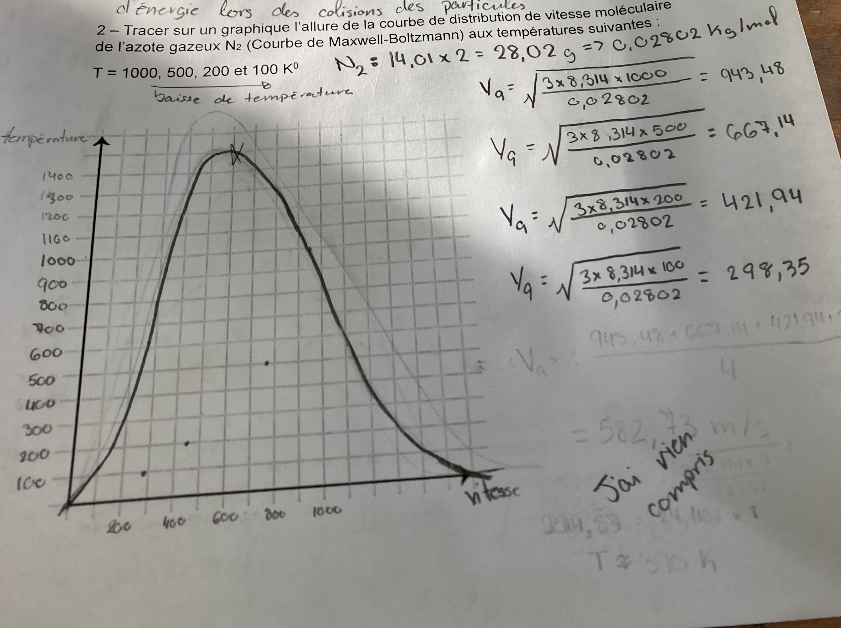 Secondaire 5 • 1mAllo! On me demande de prévoir l'effet d'un changement de température ou de masse molaire sur la vitesse des gaz avec la formule suivante: Ec=1/2mv*2. J'arrive donc avec une quantité d'énergie cinétique mais je ne comprends pas quel est le rapport entre cette formule et la température puisqu'elle n'est pas dans mes variables ?