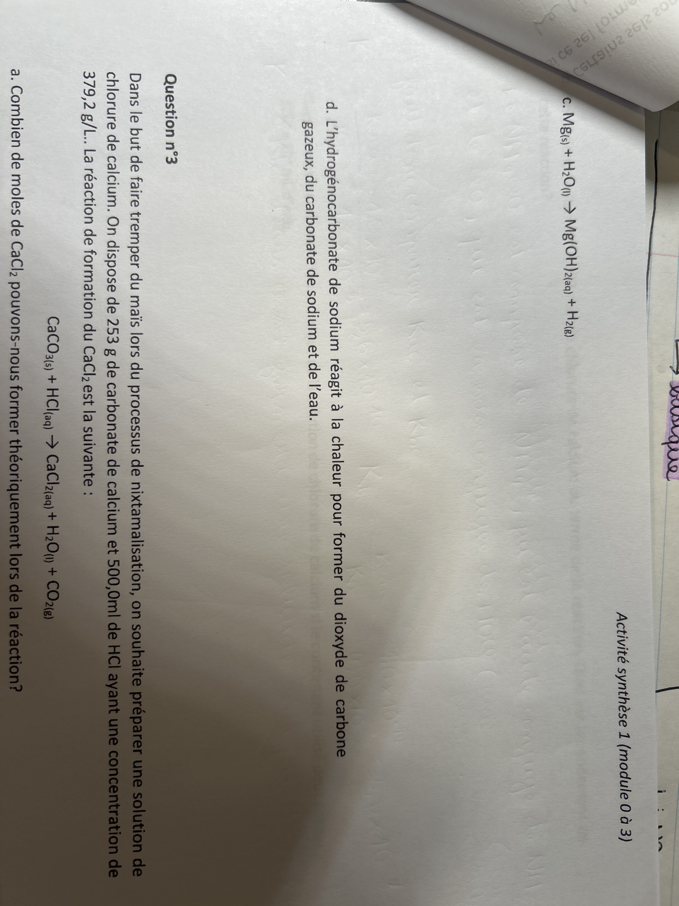 Secondaire 5 • 1abonjour, je dois faire un rapport de lab sur la loi d"avogadro et on me demande de claculer le nbr de moles de HCL et de H2 mais je ne sais pas comment faire. Si qql pourrais maider ca serait tres appreciee.