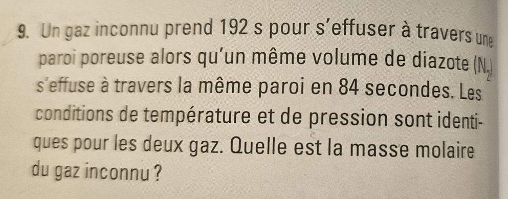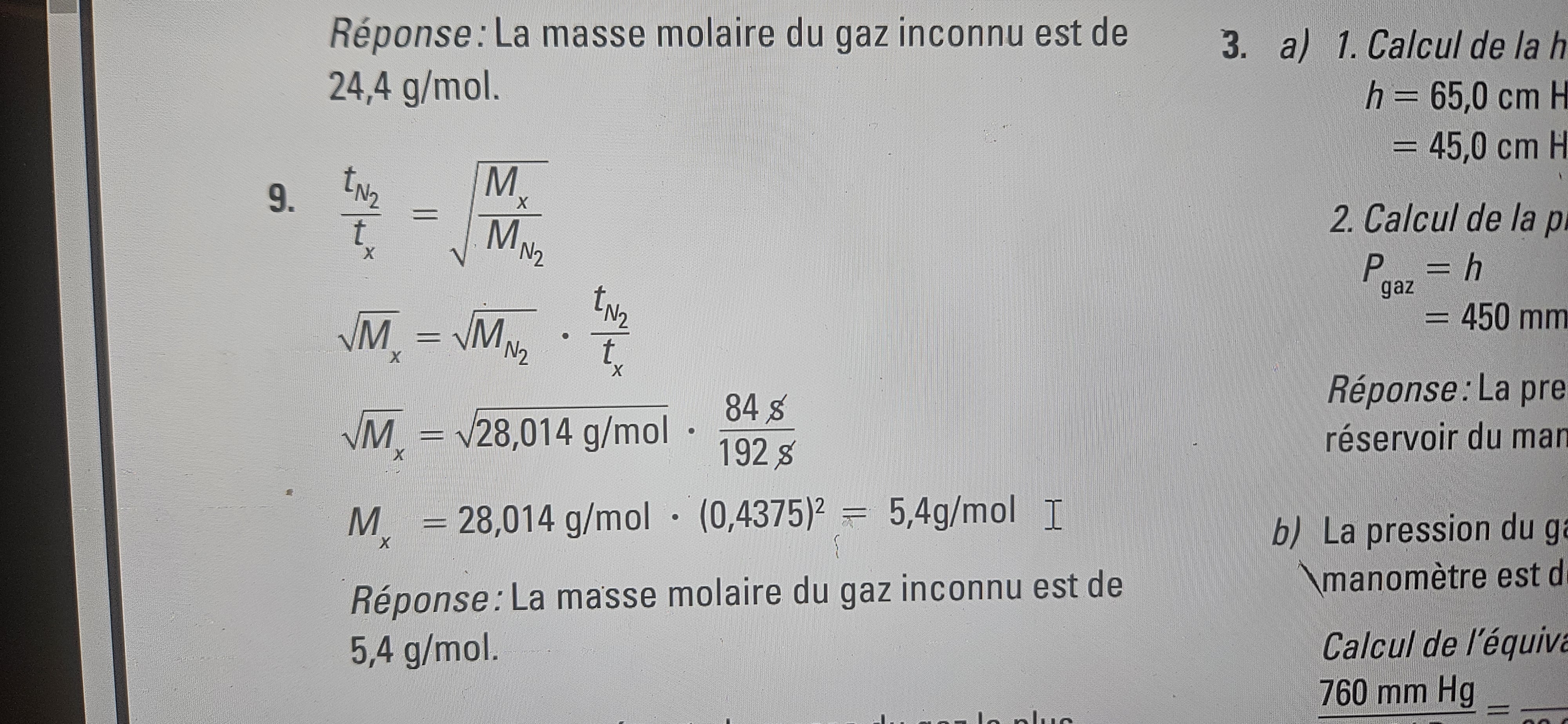 Secondaire 5 • 1aBonjour pourriez-vous m'aider? Je ne pense pas que le corrigé est correct... Le temps n'est-il pas sensé être proportionnelle à la masse molaire? J'ai personnellement trouver 146 et non 5.4...