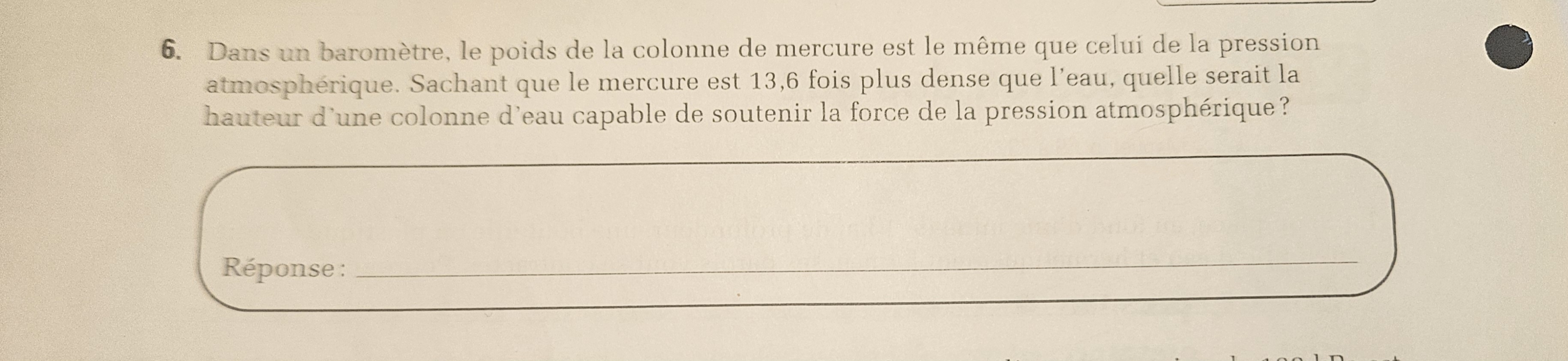 Secondaire 5 • 1aBonsoir! Pourriez vous vérifier ma response?Plus la pression atm > elle va pousser l'eau en rentrant par le tube ce qui va augmenter la hauteur de l'eau dans le réservoir