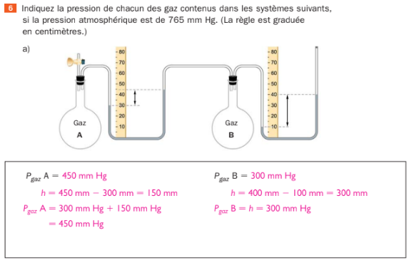 Pourquoi est-ce que la formule de "P gaz A" = 300 mm Hg + 150 mm?? Pourquoi travaille-t-on avec le 300 mm Hg, alors que, dans un manomètre fermé, la pression du gaz devrait être égal à la hauteur du mercure?