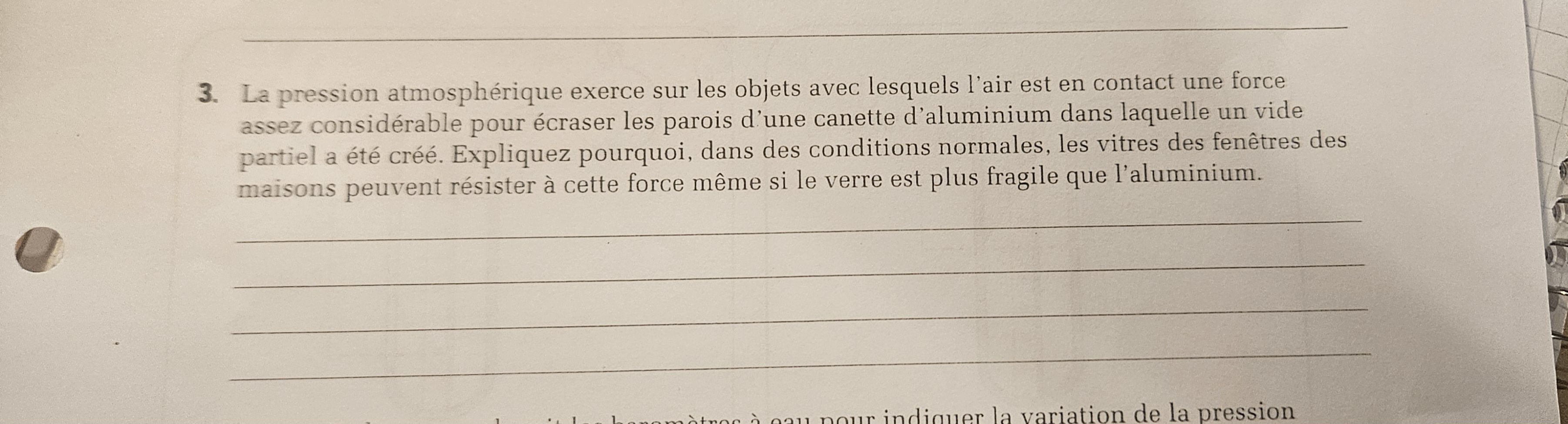 Expliquez les observations suivantes en considérant la force que représente la pression atmosphérique