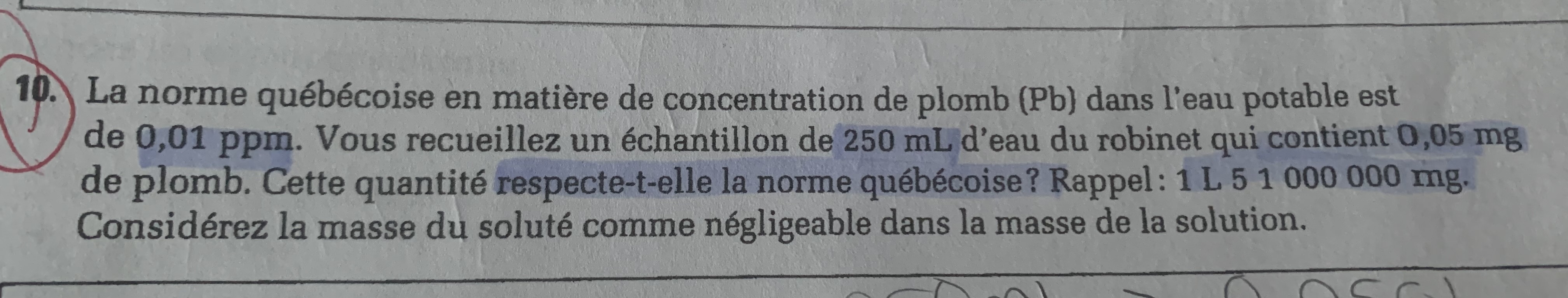 Secondaire 5 • 1aBonjour, je ne comprends pas la concentration en ppm. Je comprends le concepts (qu’il faut que sa soit m/m x10 à la 6) mais je ne comprends pas quand c’est mise en contexte.