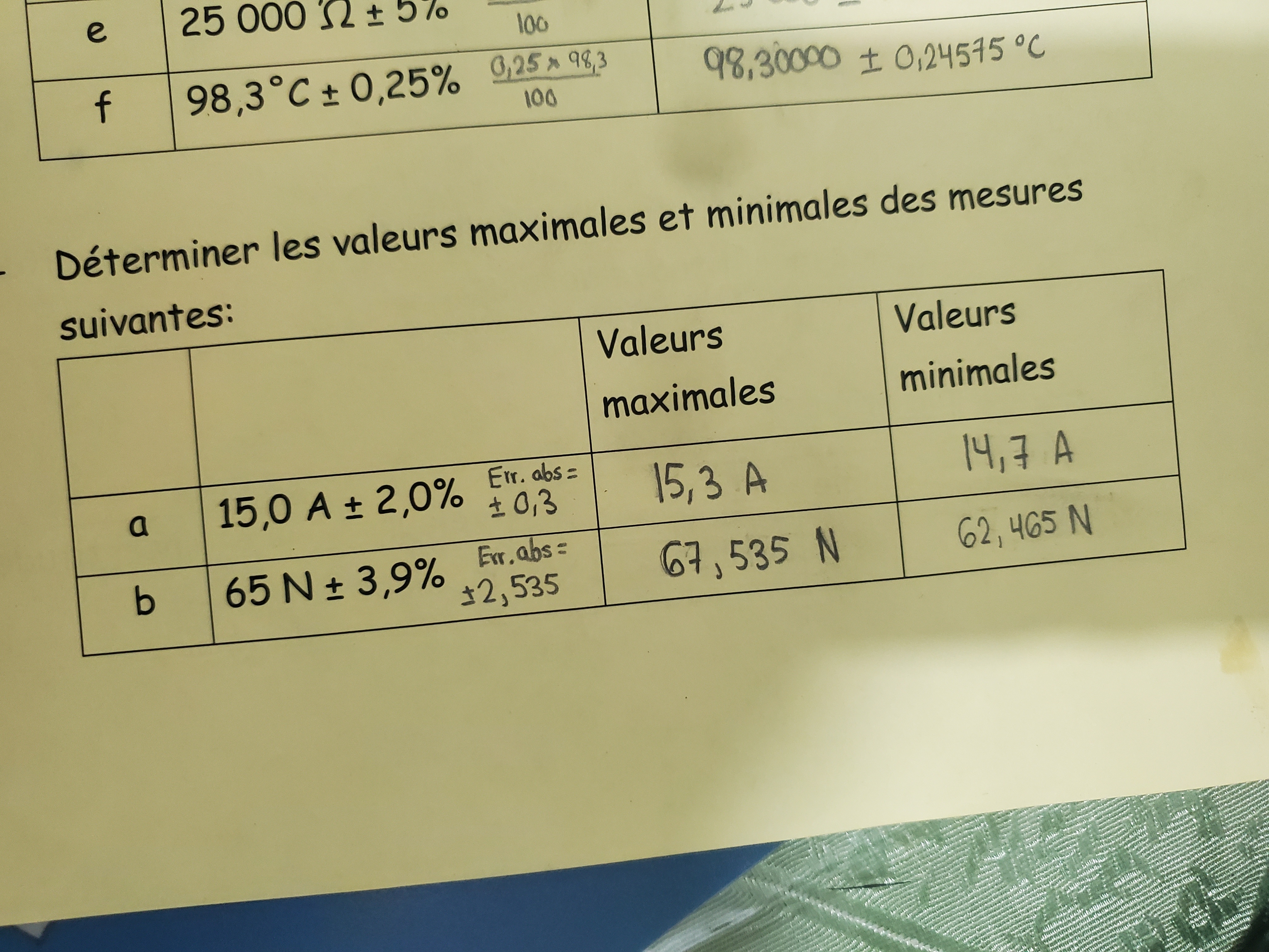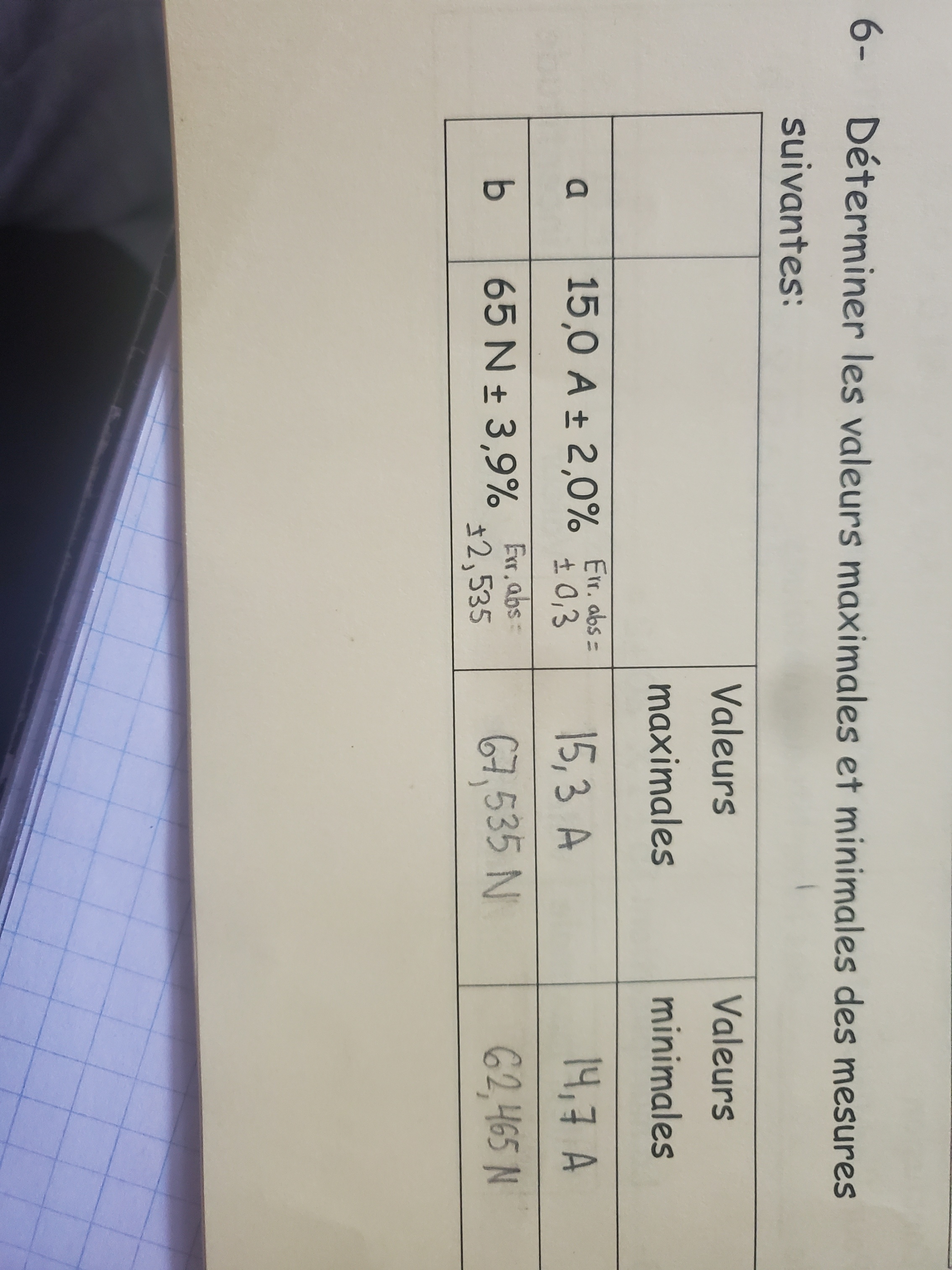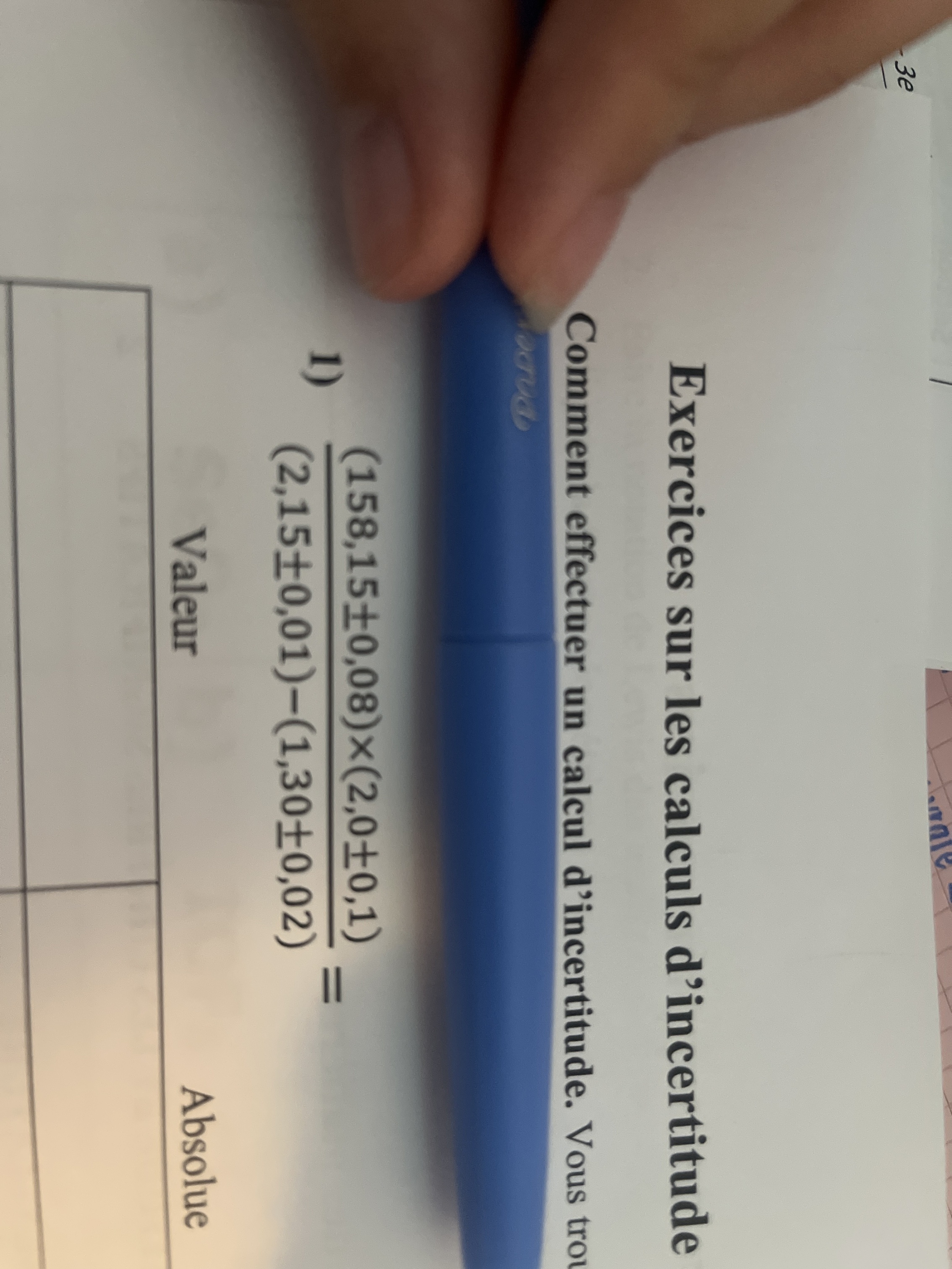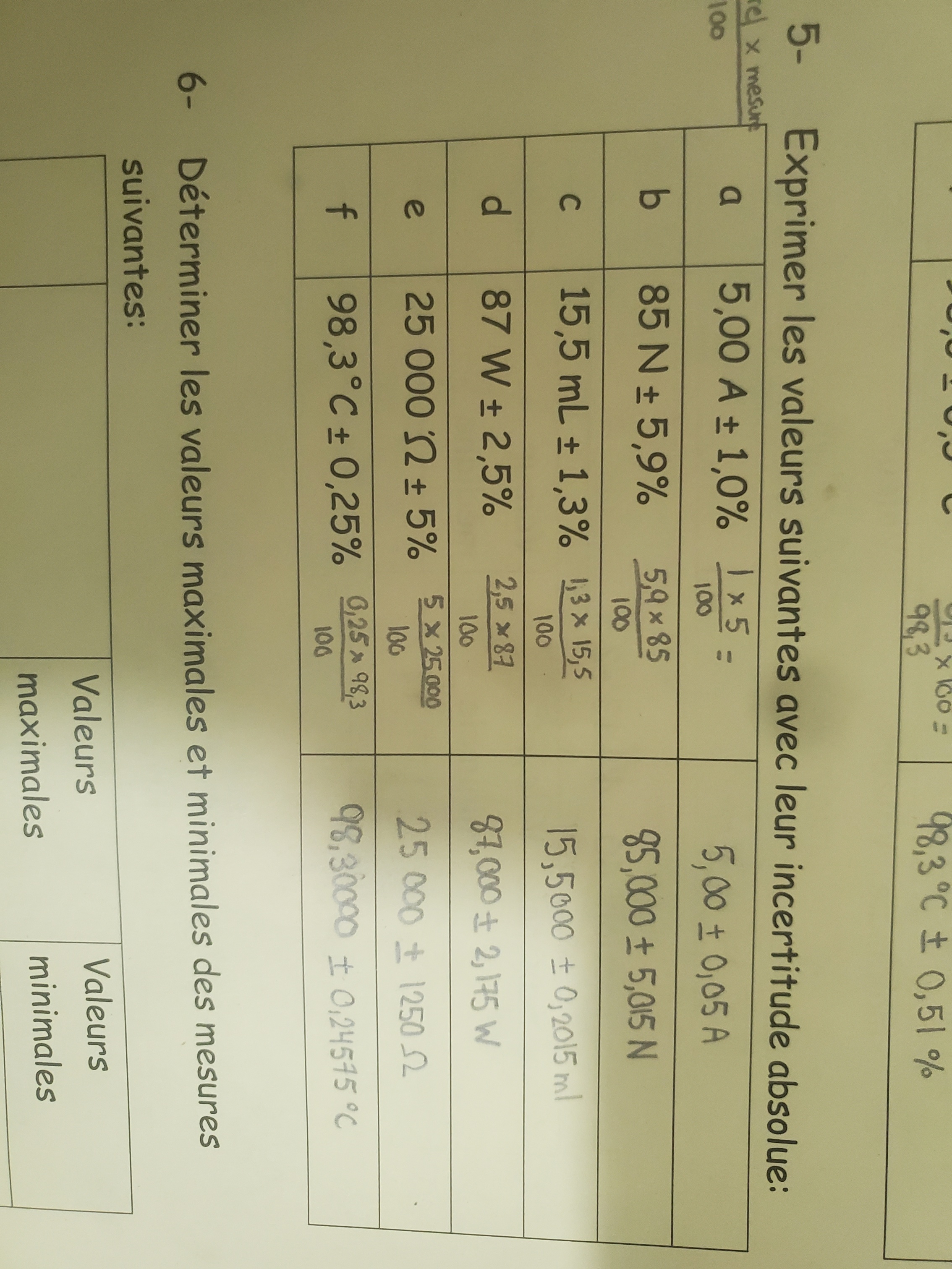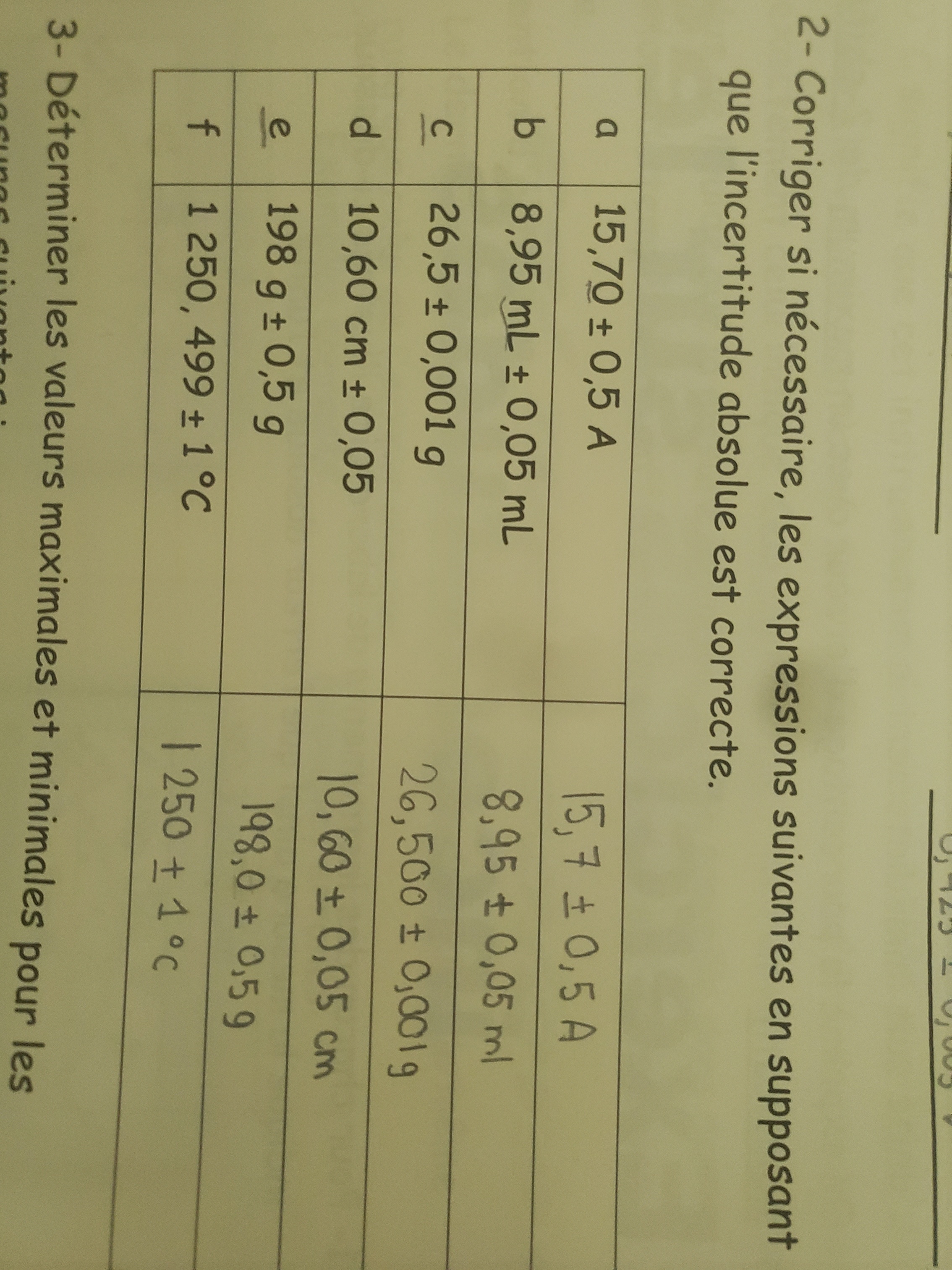 Secondaire 5 • 1aBonjour c'était mon premier cours en chimie aujourd'hui et j'ai beaucoup de questions :Pour ce numéro est ce que c'est ça l'erreur absolue comme dans le premier j'ai mis 0.05 puisque l'incertitude est sur le dernier chiffre et dans le cas du premier c'est sur le chiffre 2 alors c'est vraiment ça les erreurs absolues ?