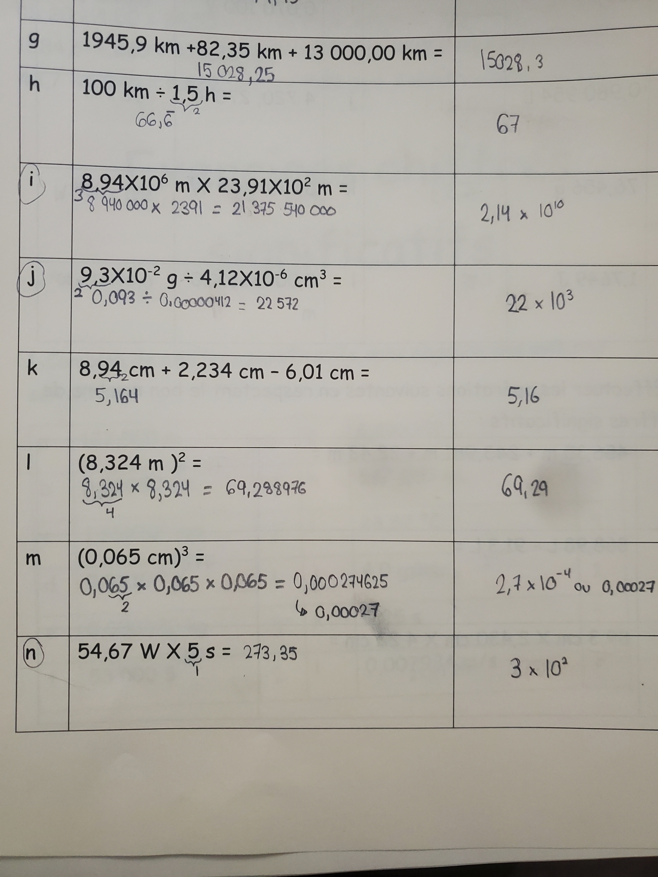 Il faut effectuer les opérations suivantes en respectant le bon nombre de chiffres significatifs