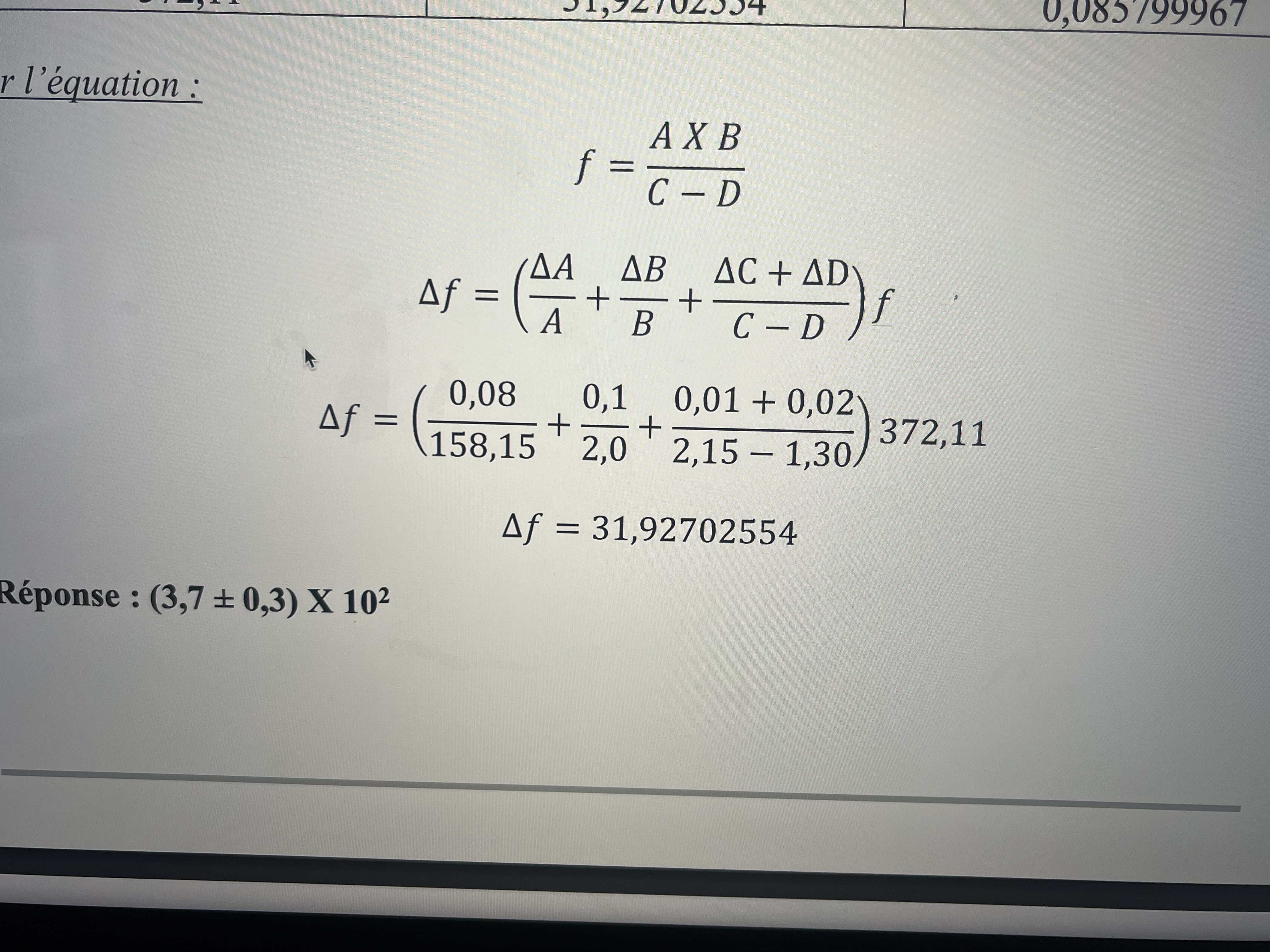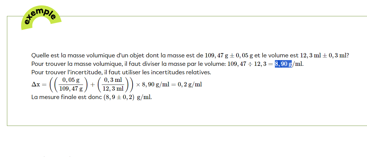 Secondaire 5 • 1aBonjour! Je faisais des calculs d’incertitude et dans le corrigé on me dit d’utiliser cette formule afin de résoudre ça:
