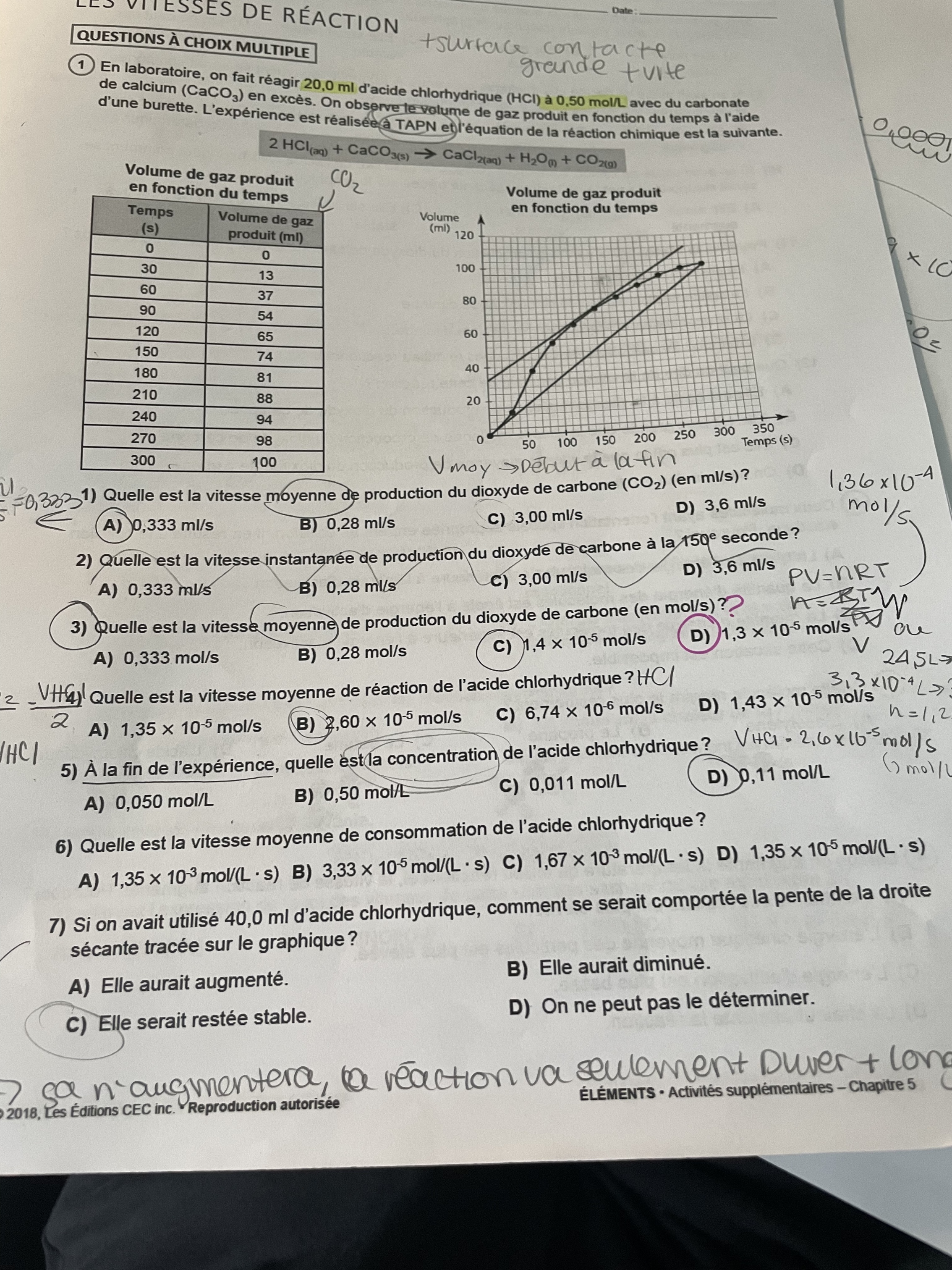 Secondaire 5 • 1aJe n’arrive pas a trouver la réponse correcte, la réponse dit que c’est 0,025 mol/s mais je veux savoir la démarche pour en arriver la svp