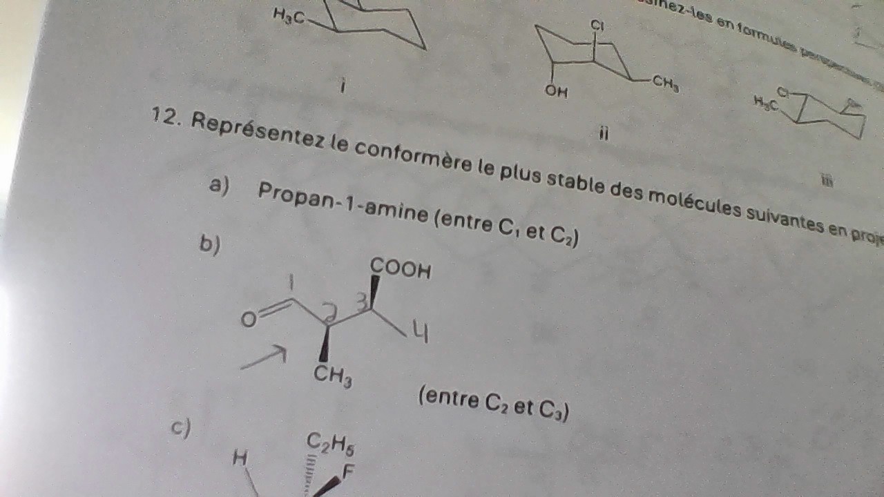 Postsecondaire • 2mBonjour, j'au un problème dans un exercice de chimie. Je doit représenté un conformère de Newman. Je dois numéroté ma chaine. J'ai mit que le carbonne 1 était lui portant la liaison double avec oxygène. Est ce correct ?