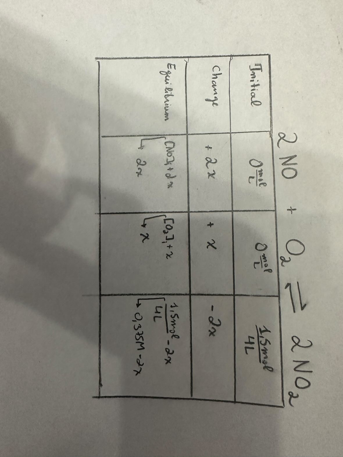 Nous avons initialement 1,50 mol de NO2 dans un contenant ayant une capacité de 4,00 L. Le NO2 se décompose en NO et O2 selon l'équation suivante: