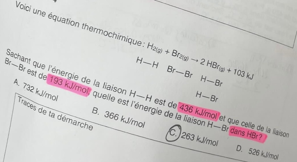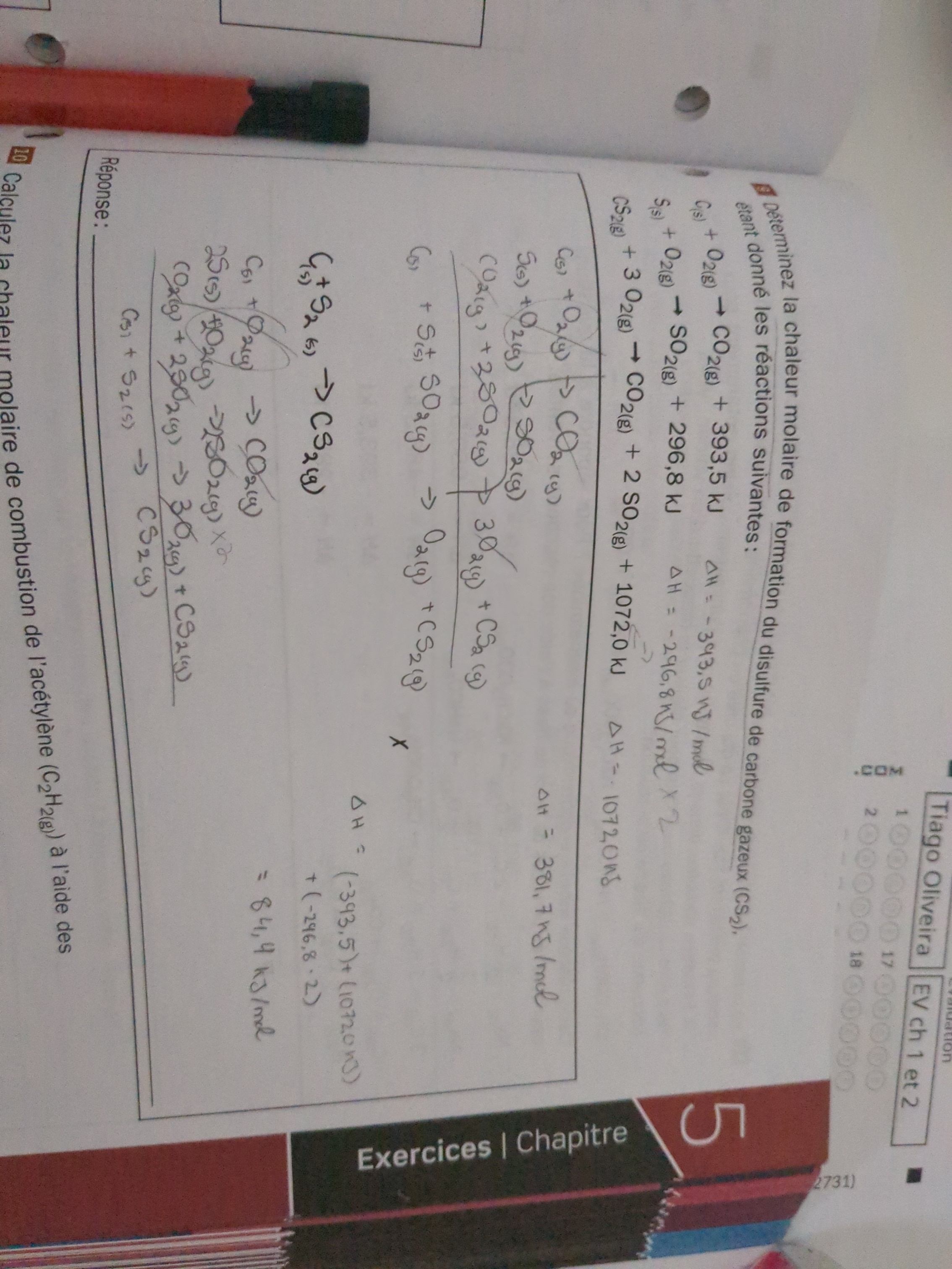 Dans l'exercice suivant, nous avons doublé la quantité d'énergie afin de mieux balancer l'équation de la formation du CS2.