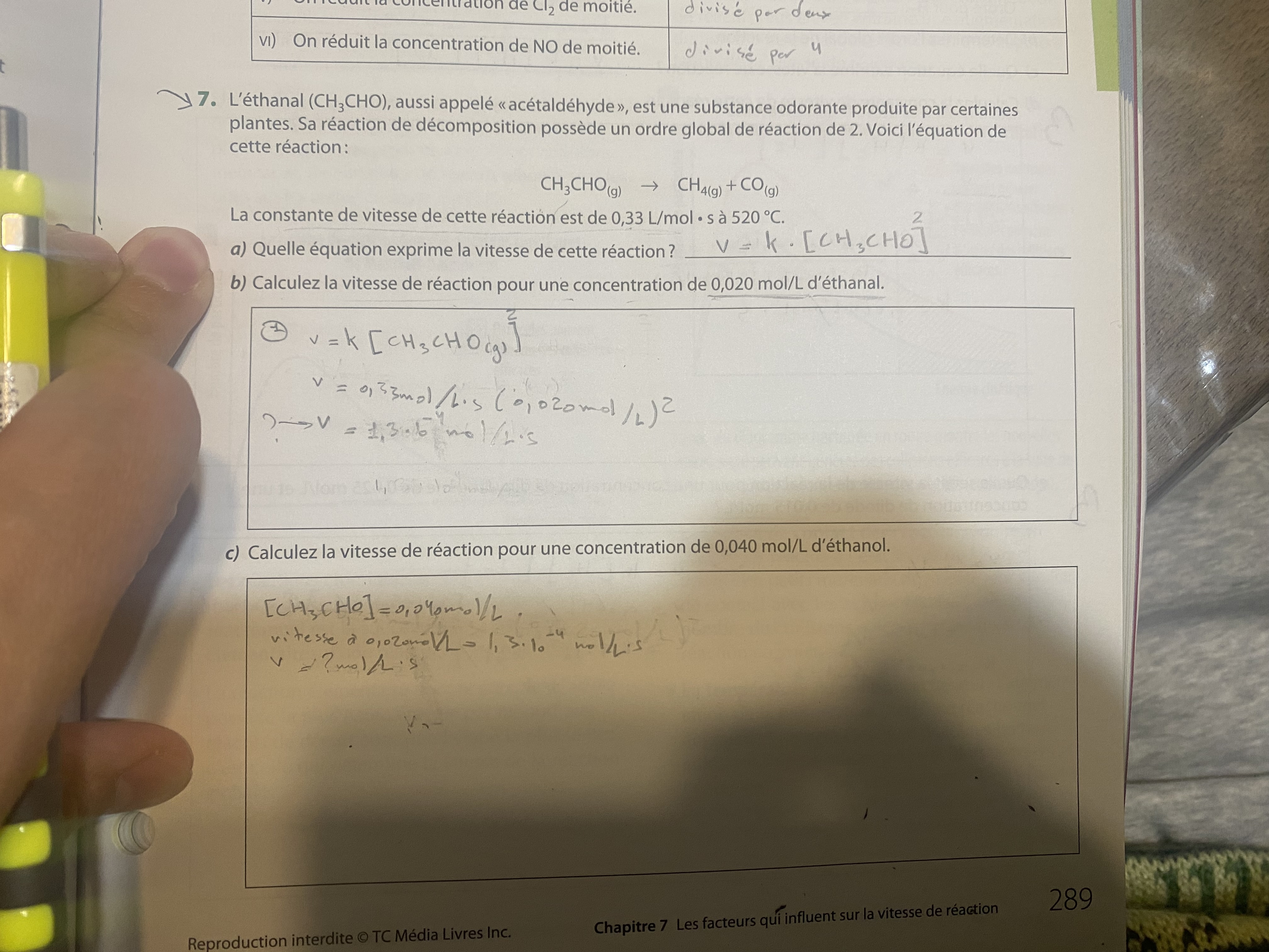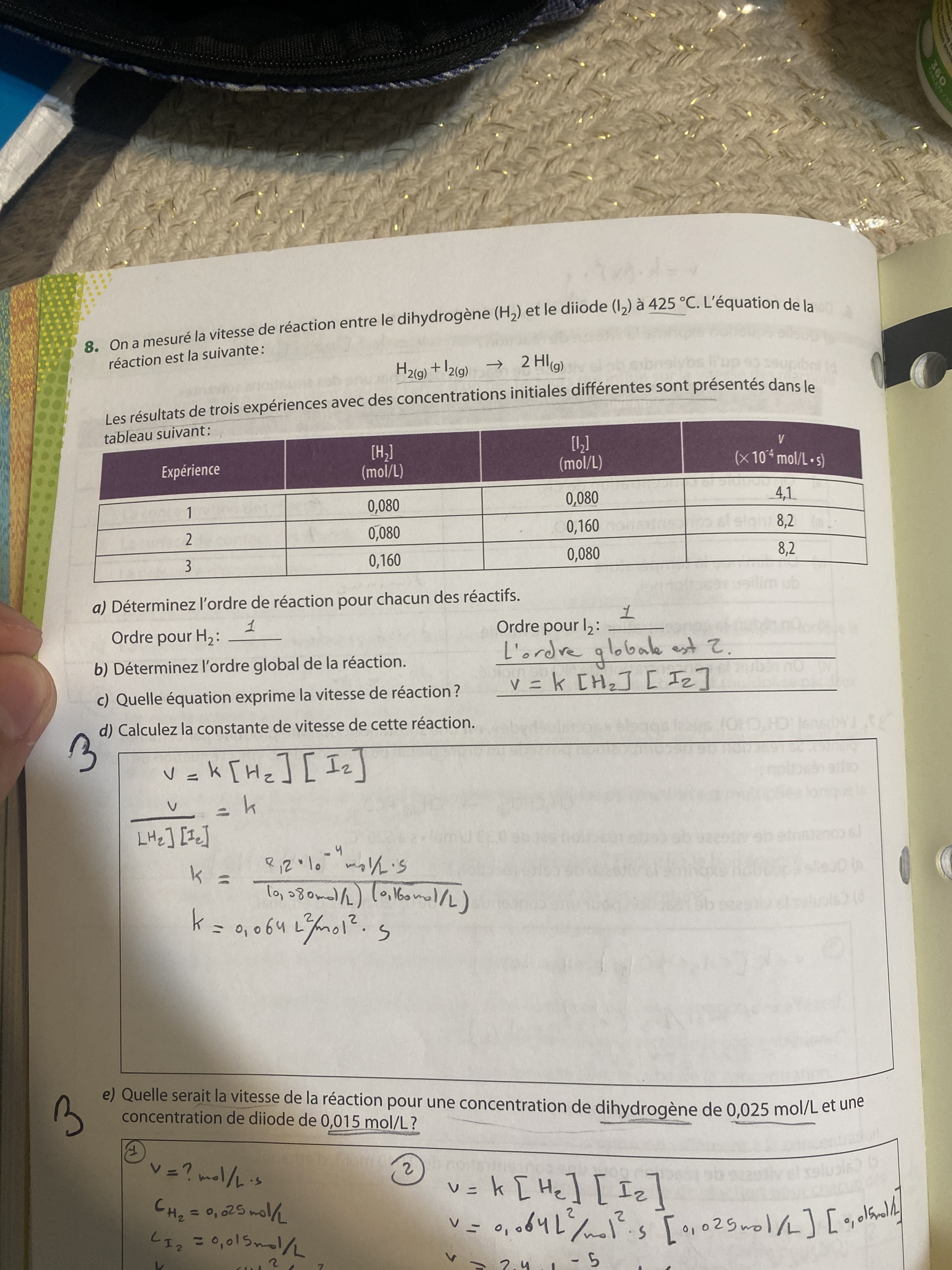 Secondaire 5 • 1aA la question D, pourquoi choisir t on cette vitesse pour trouver la constante de vitesse?