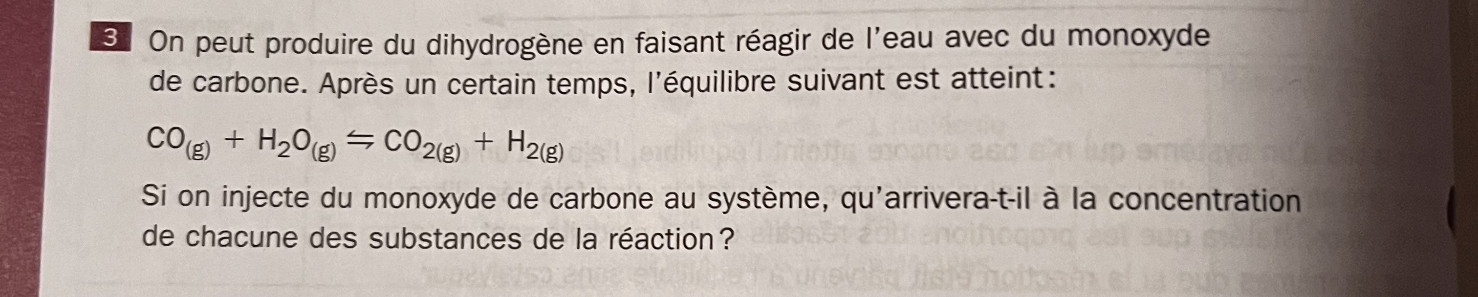 Secondaire 5 • 1aBonjour, si j'ajoute un réactif dans une équation chimique, qu'arrivera t'il à la concentrations des réactifs ainsi que des produits?
