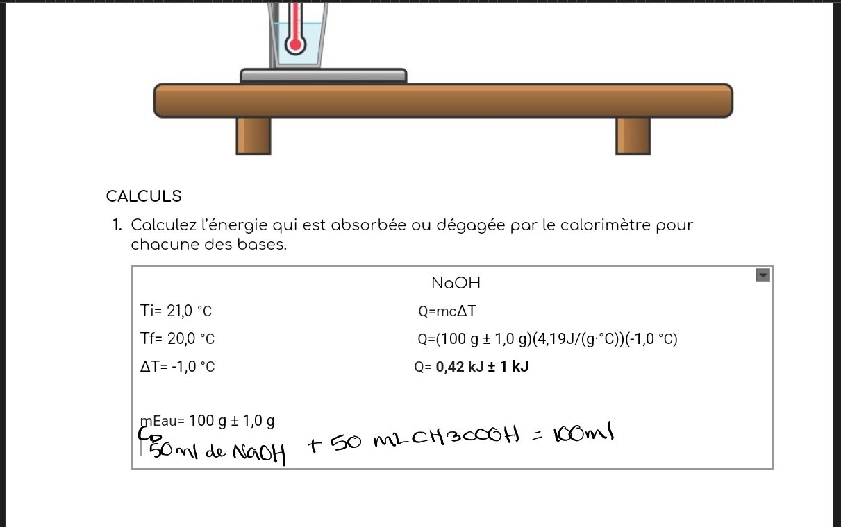 Secondaire 5 • 1apouvez vous m’aider à trouver la chaleur du NaOH en ayant les informations suivante