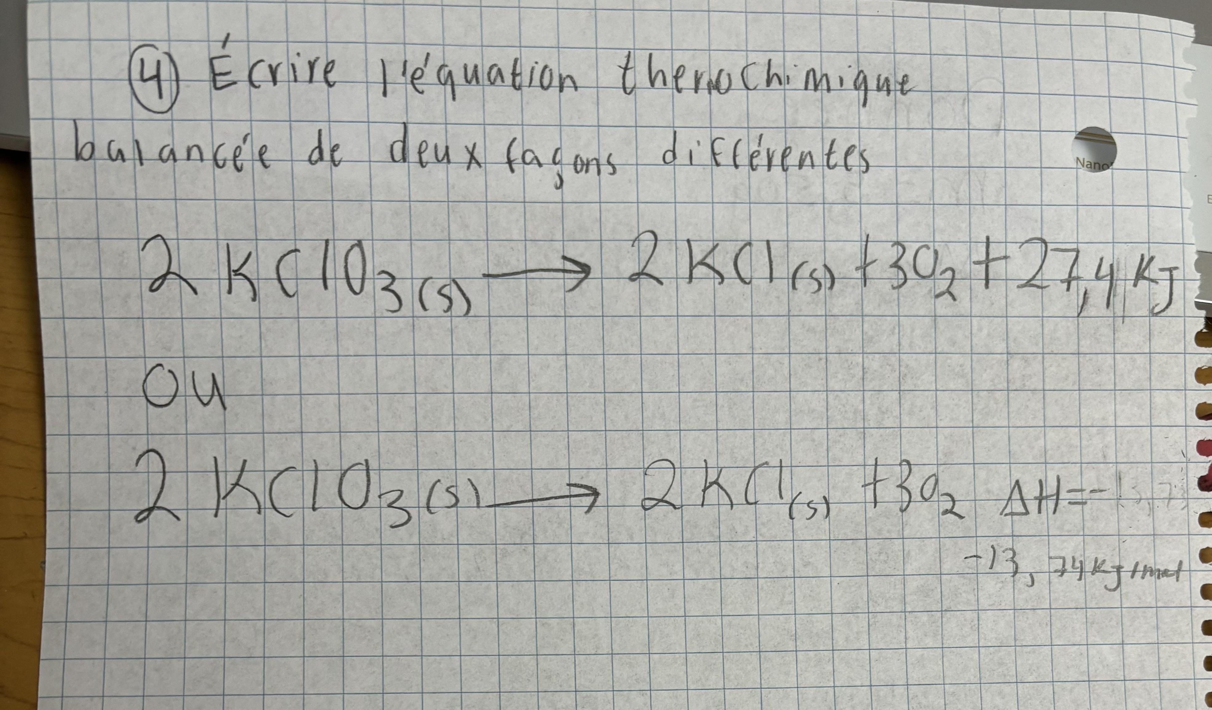 Écrivez de deux façons différentes l'équation thermochimique de cette décomposition.