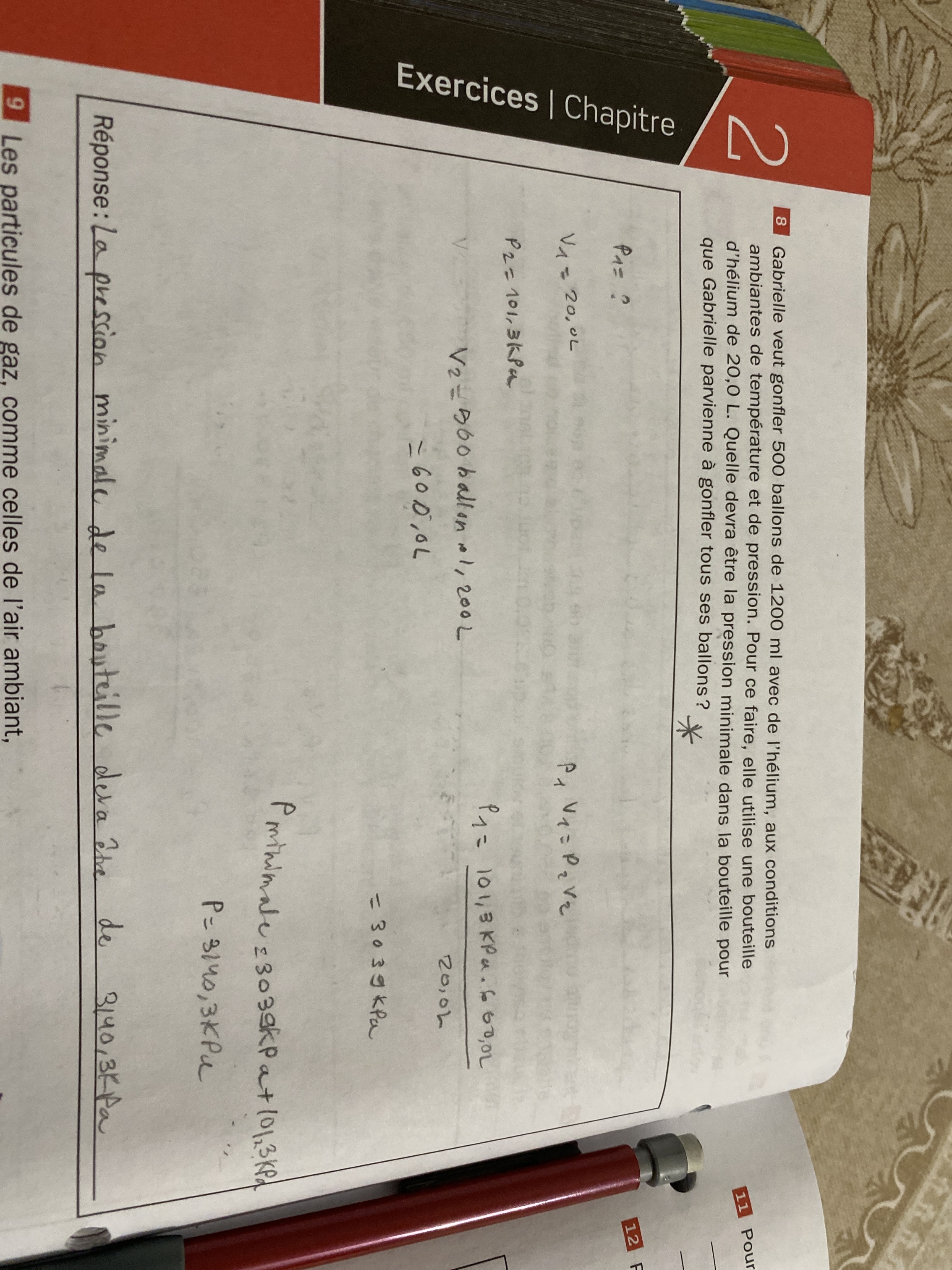 Secondaire 5 • 1aBonsoir . J’ai résolu ce problème mais j’ai fait un petite erreur . Dans la photo que je vous envoie il y’a les bonnes réponse . Je ne comprend pas pourquoi à la fin du calcul je dois additionner la pression atmosphérique au p1 pour trouver la pression minimale. Merci d’avance!!!