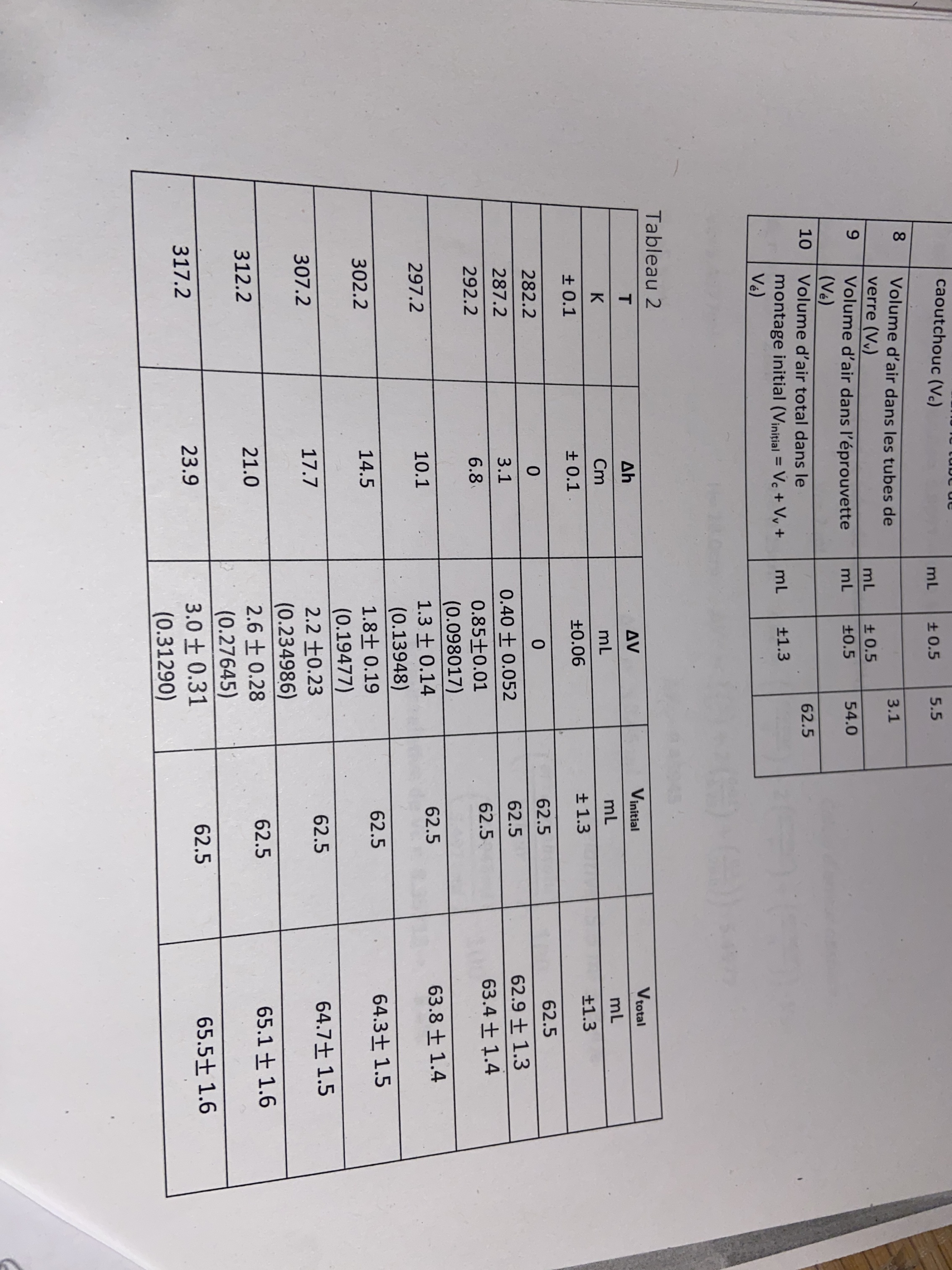 Secondaire 5 • 1abonjour jai un rapport de laboratoire a fsire mais je ne sais pas comment mettre les carré des erreurs absolue dans le tableau, mon erreur absolue sur ma temperature est de 0.1 et du volume de 1.3 comment esque j’incomporte sa dans le graphique? merci