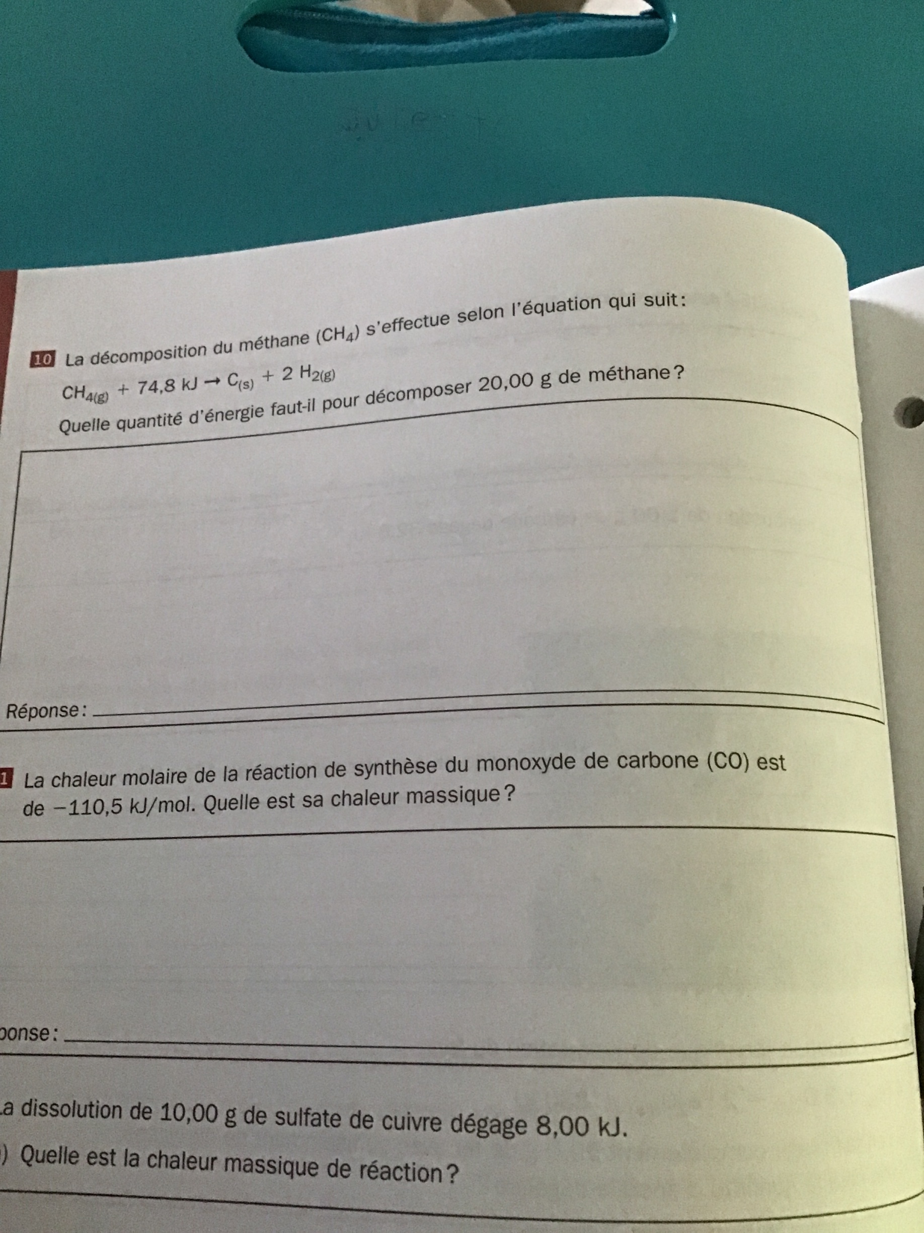 Secondaire 5 • 1aBonjour je dois résoudre un problème de chimie , mais je ne sais pas quoi prendre comme calcule. La question est : Quelle est l’énergie absorbée par l’eau?