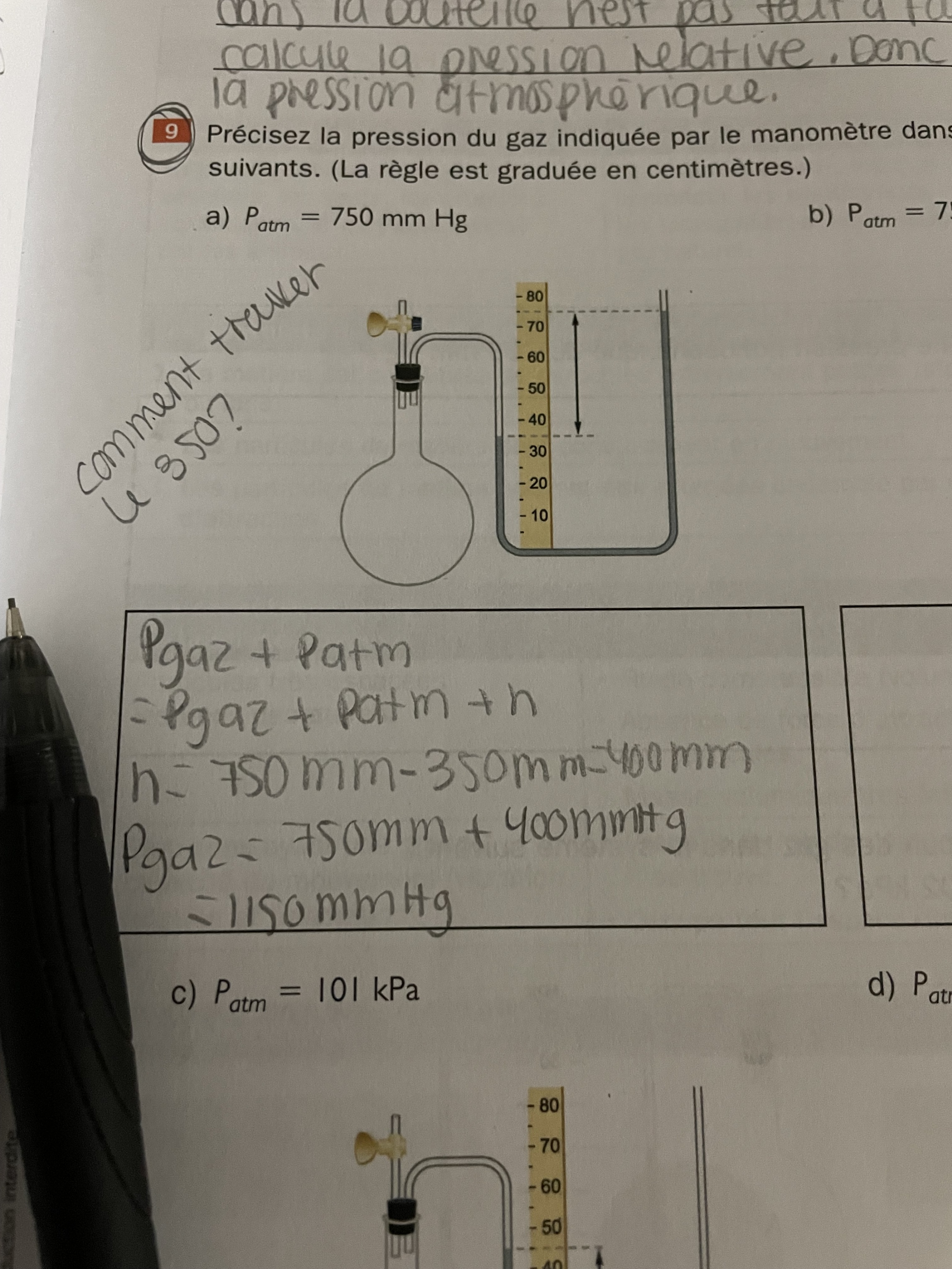la question est : un manomètre indique une pression de 3,65 atm. Quelle est la pression de ce gaz en KPa?