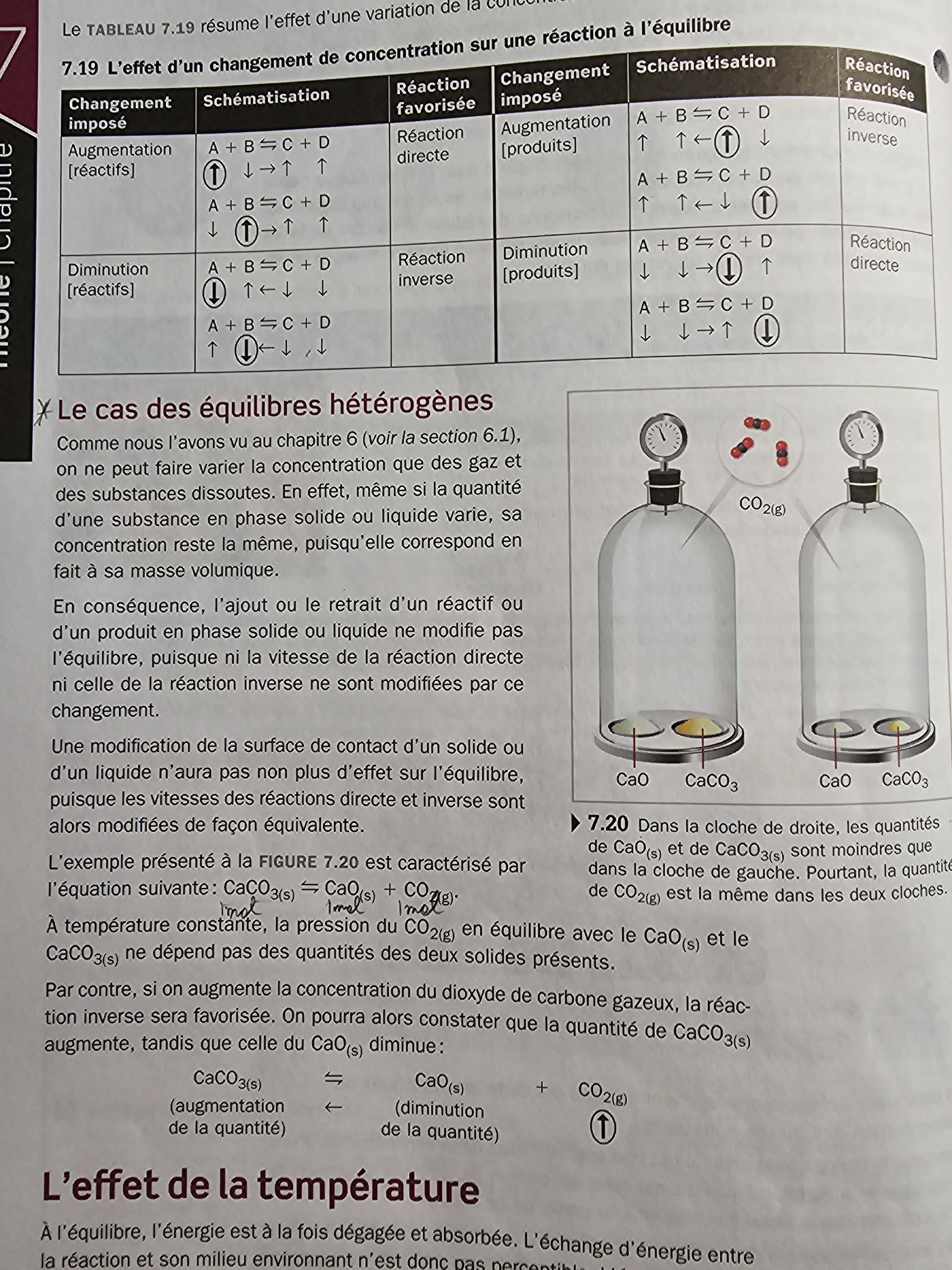 Secondaire 5 • 2aPourquoi est-ce la quantité de solide ne modifie pas l'état d'équilibre? Je ne comprends pas le lien avec sa concentration étant 100% lui-même. Pourtant il doit y avoir une quantité de solide autant qu'une quantité de gaz pour pouvoir faire la réaction.