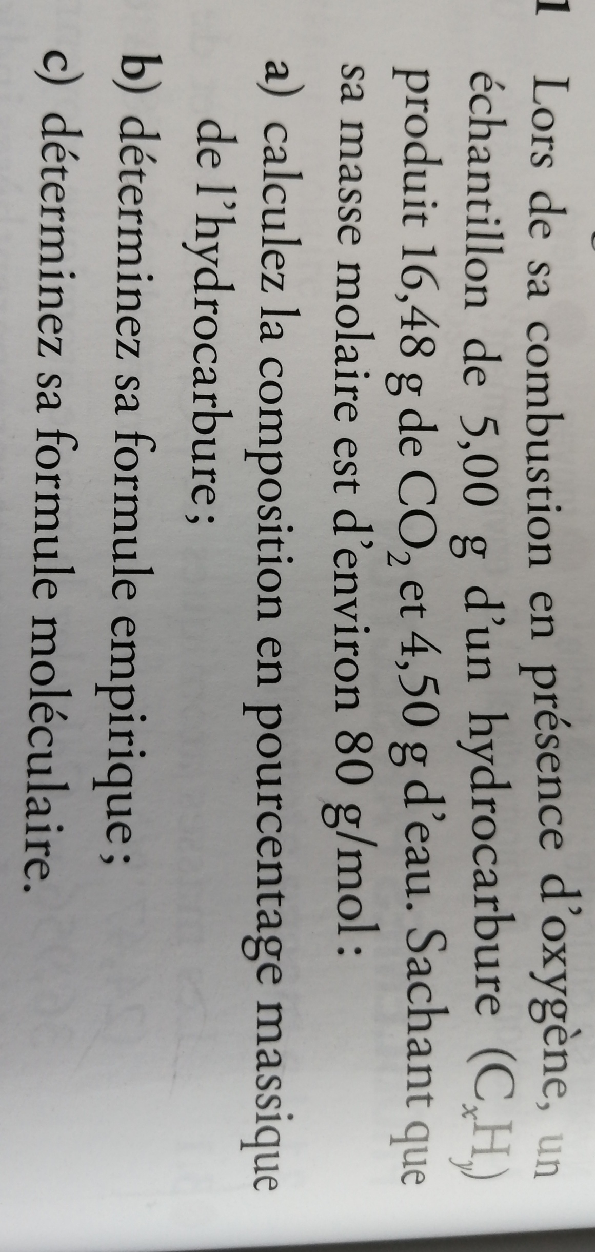 j’ai faite un problème de chimie et avec le corriger, j’ai pus avoir la bonne réponse. Cependant, je ne comprend pas la réponse.