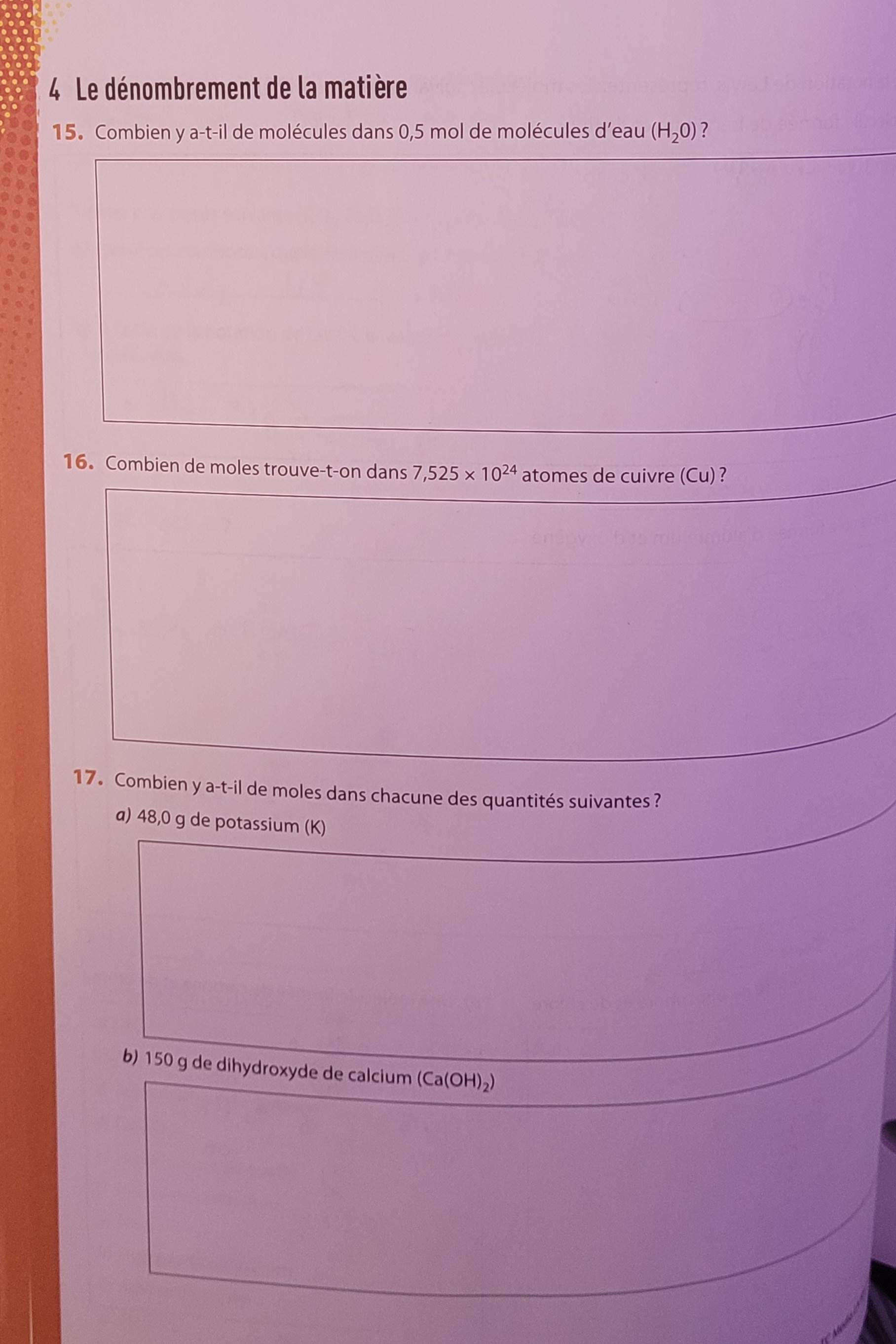 Postsecondaire • 2aBonjour Alloprof! Je n'arrive vraiment pas à trouver la réponse à cette question? Pouvez vous m'aider ? Je ne sais pas quel est le lien entre l'énergie et le nombre de mol