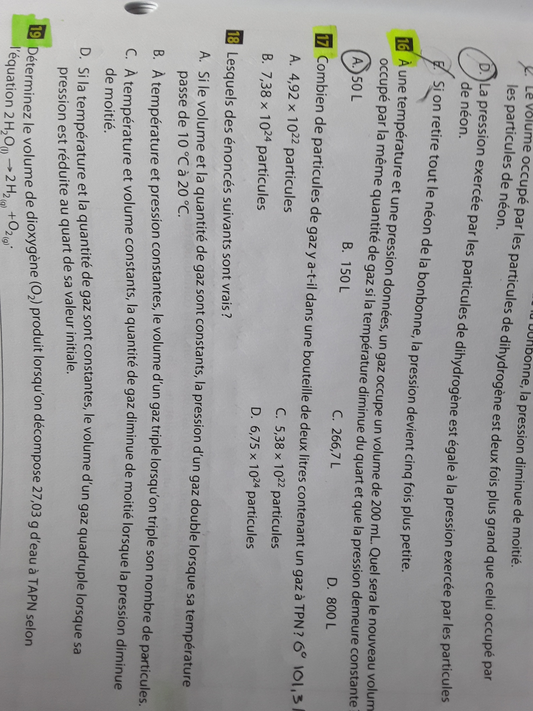 Secondaire 5 • 2aBonjour je fait mes exercices de chimie et j’ai un blanc de comment isoler dans la loi des gaz parfait par exemple je doit trouver v2 dans la formule p1v1/t1=p2v2/t2