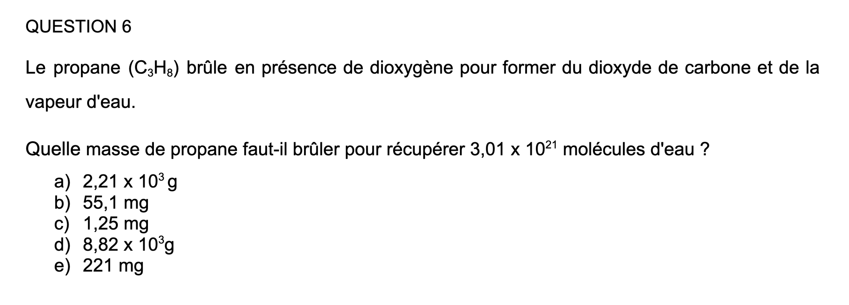 Secondaire 4 • 2aBonjour, est-ce que quelqu'un pourrait m'expliquer comment faire ce numéro? Je n'arrive pas à la bonne réponse (ça me donne 3,319*10^22 g).