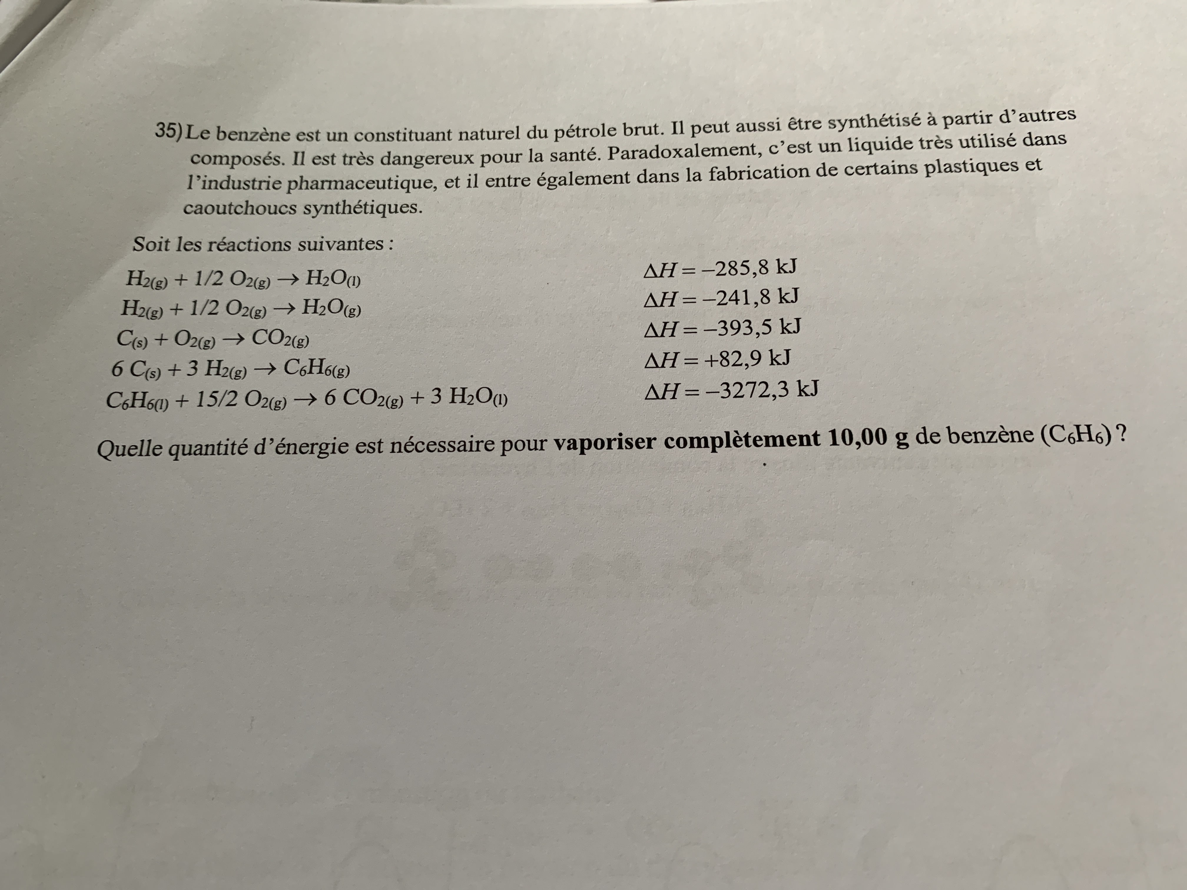 je vous écris parce que j'ai de la difficulté à faire mes exercices portant sur l'enthalpie (toute sorte d'enthalpie) ainsi que la vitesse de réaction. Mon examen de fin d'année est mercredi prochain, et je ne me sens pas très prête, à vrai dire. J'ai déjà consultée vos fiches, et essayée vos exercices en ligne, mais en vain. Mon problème est vraiment au niveau de quand vient le temps de faire mes exercices. Là, cela bloque complètement. J'ai l'intention d'appeler ce dimanche, afin de demander l'aide d'un professeur, mais si vous pouvez déjà commencer à m'aider, cela serait encore mieux.