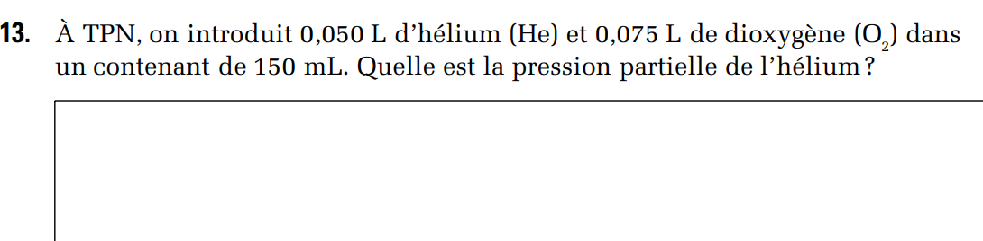Secondaire 3 • 2aJe ne comprends pas comment faire ceci! un contenant helium continent 15 l d’helium sous press ion a environ 2 250kpa a 24,5 degree. Combien de moles helium a til dans le contensnt