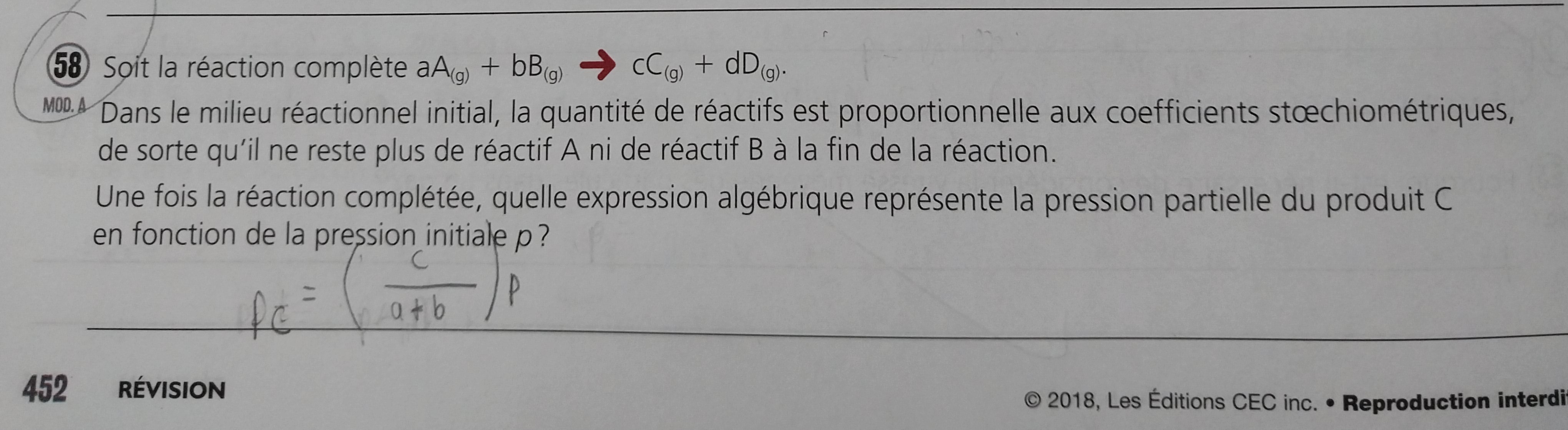 Secondaire 5 • 2aJ’aimerai savoir si cette équation est correct. Je m’intéresse particulièrement au chargé des produit