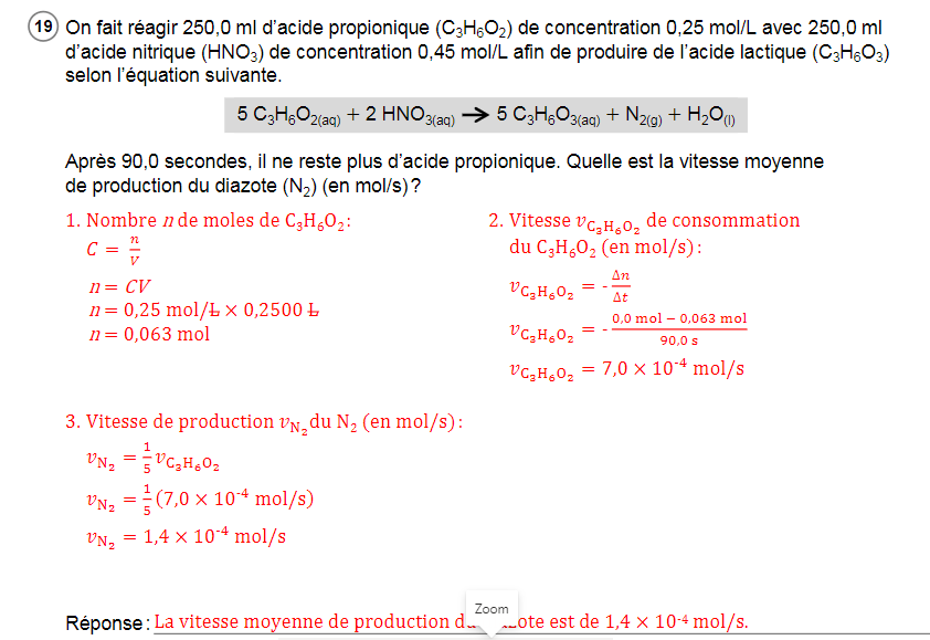 Secondaire 5 • 2aBonsoir, j'aimerai savoir pourquoi lors de la résolution, on utilise l'acide propionique et non l'acide nitrique pour trouver la vitesse