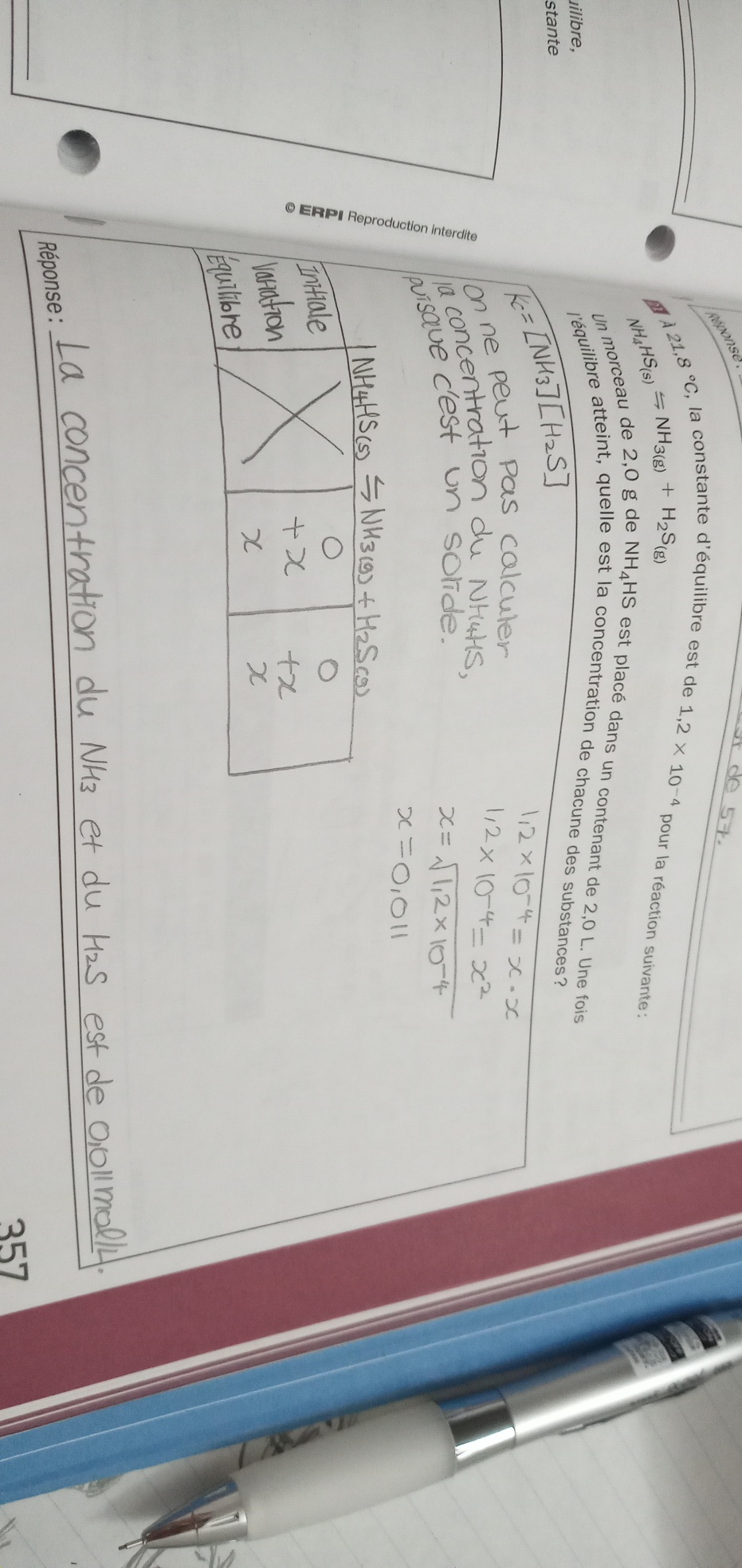 J'aimerais savoir pourquoi est ce qu'au numéro 11 b) on favorise la réaction directe, s'il vous plait. Merci!