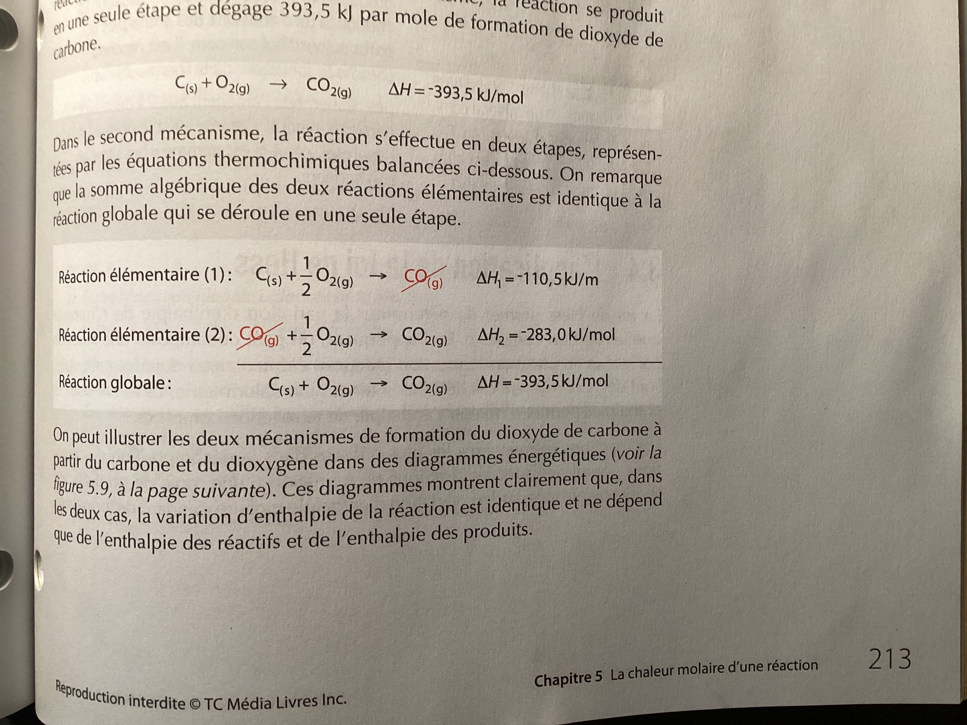 Secondaire 5 • 2aDans la loi de hess, je ne comprend pas comment comment on peut la variation d’enthalpie. Dans cette photo on voit que c’est écrit -110,5 kj/mol… Je n’arrive pas à comprendre comment.