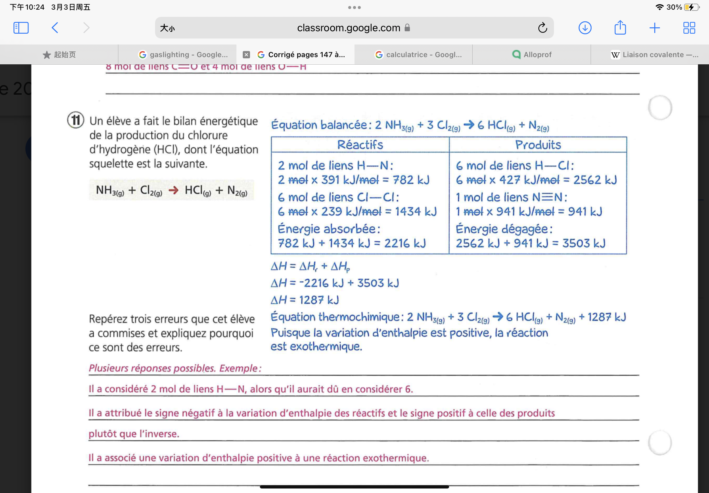 pouvez-vous m’expliquer pourquoi c’est 6 mole de Cl-Cl mais pas 3 mole SVP?