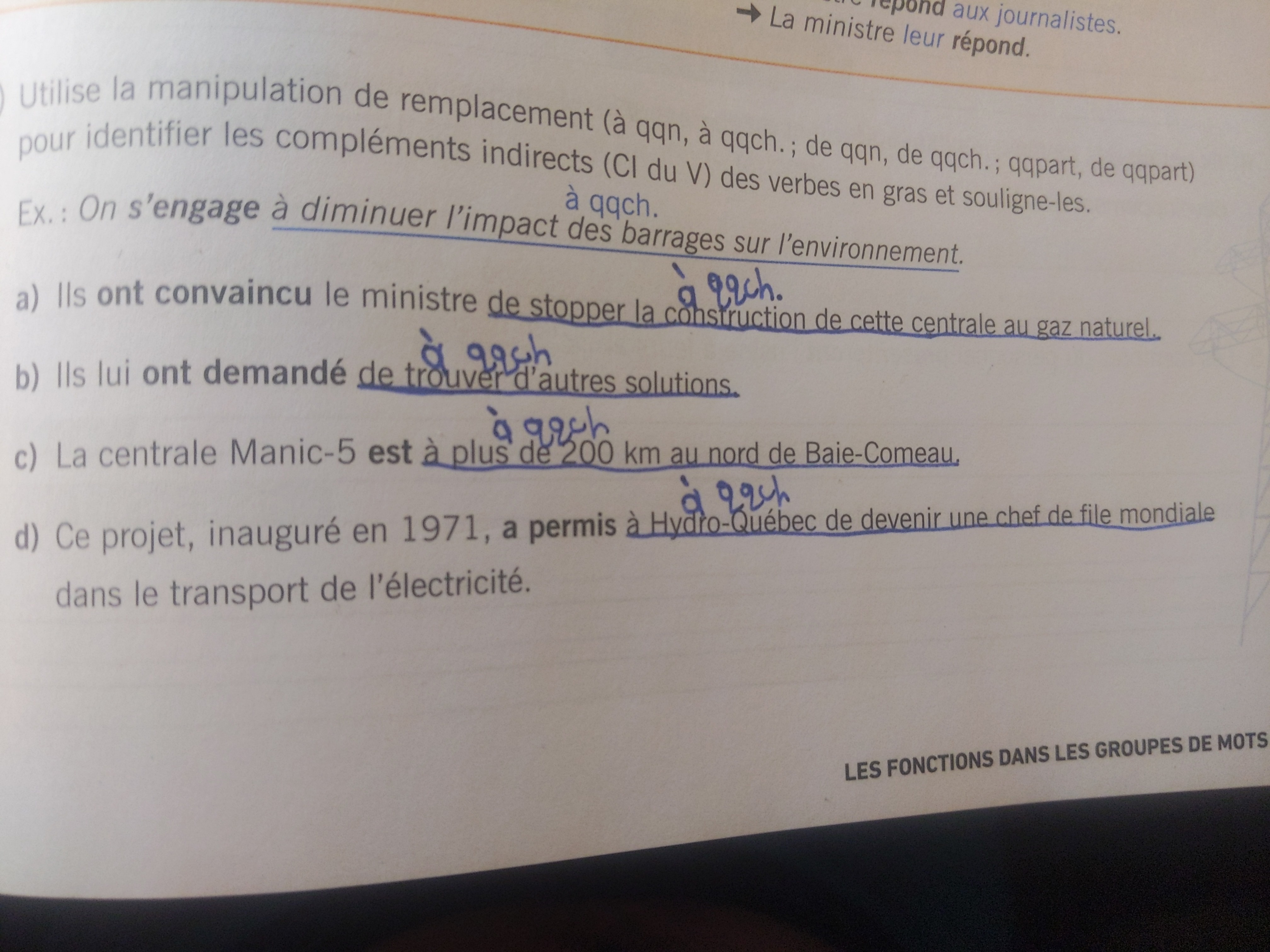 Le d) Est ce que je dois surligner jusqu'à la fin du point?On met quand à qqn, de qqch, de qqpart, de qqpart?
