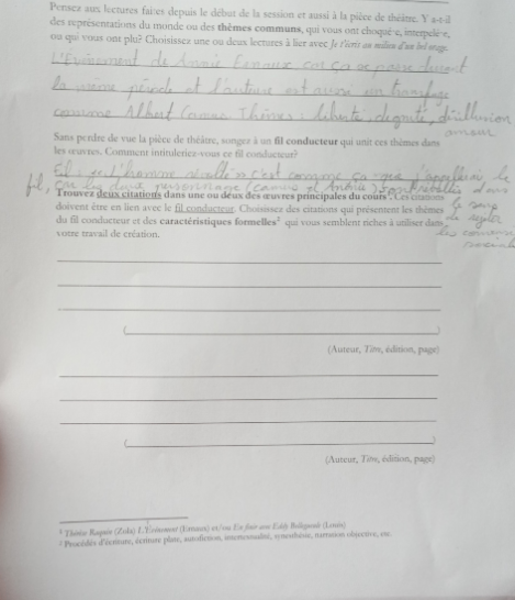 Postsecondaire • 1aBonjour, je ne suis pas sur de comprendre ce que c'est qu'un fil conducteur quant on parle de deux oeuvres en même temps..