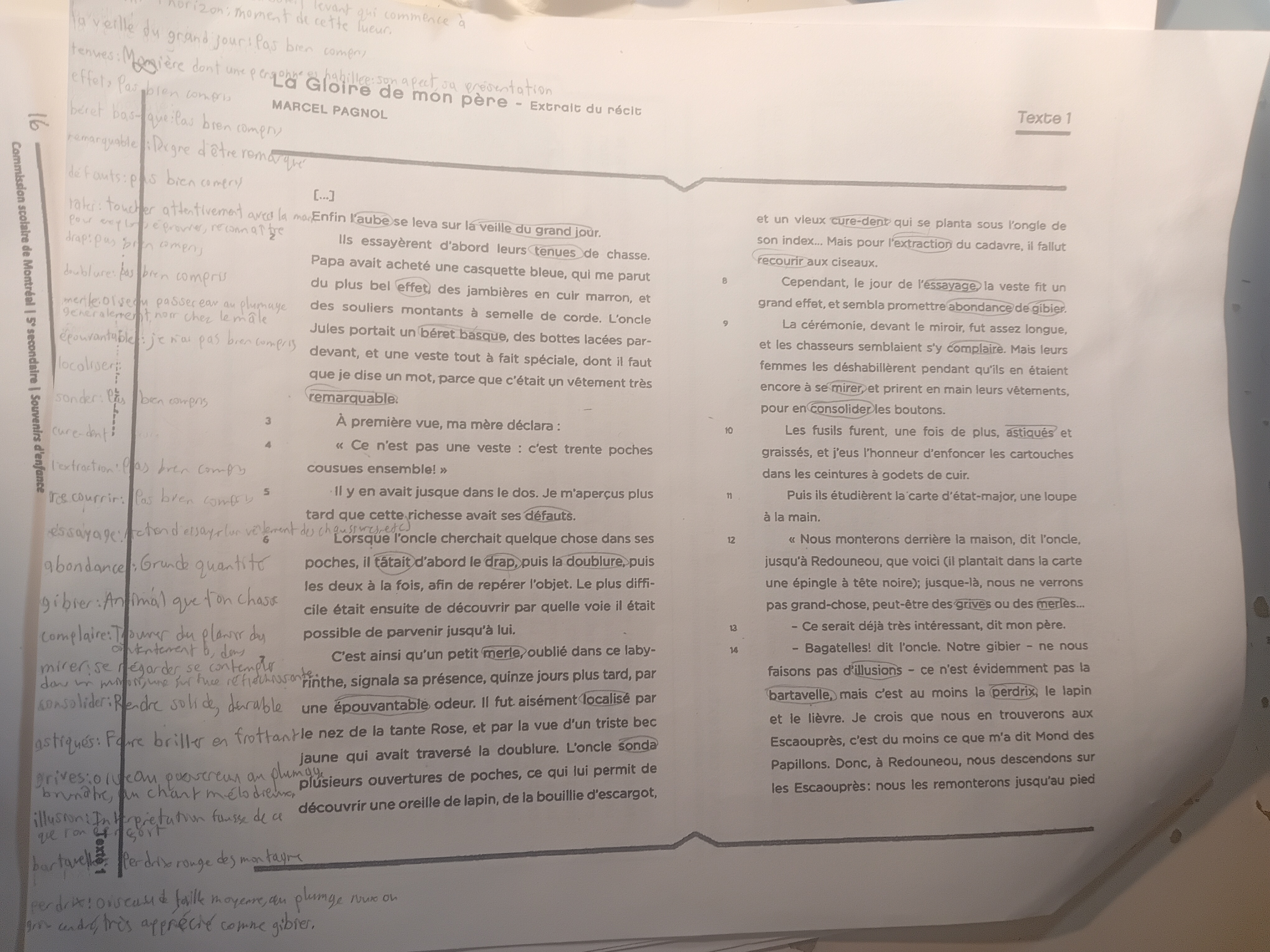 Secondaire 5 • 1mIl y a des mots d'as ce texte que je n'ai pas compris comme musette, carnier, peaux rouges, comanche et je n'arrive pas à trouver la définition en français, mollet, enchaîner et garrigue.