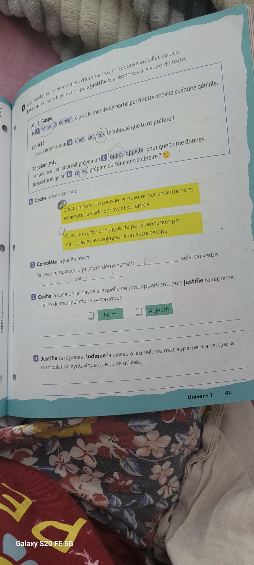 Secondaire 1 • 2mpouvez vous me faire des exercices sur les classe de mots