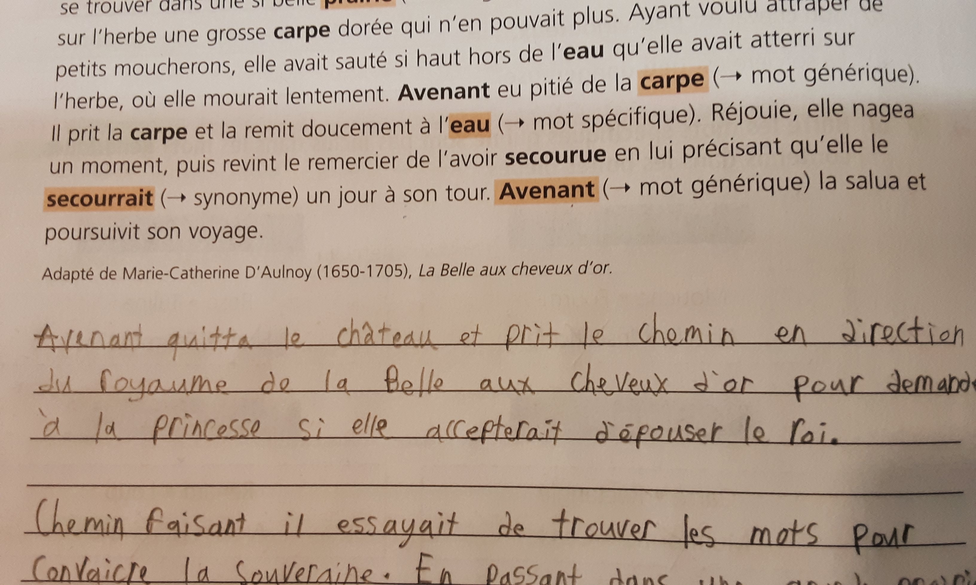 Dans mon excercice par exemple : Avenant la salua ...