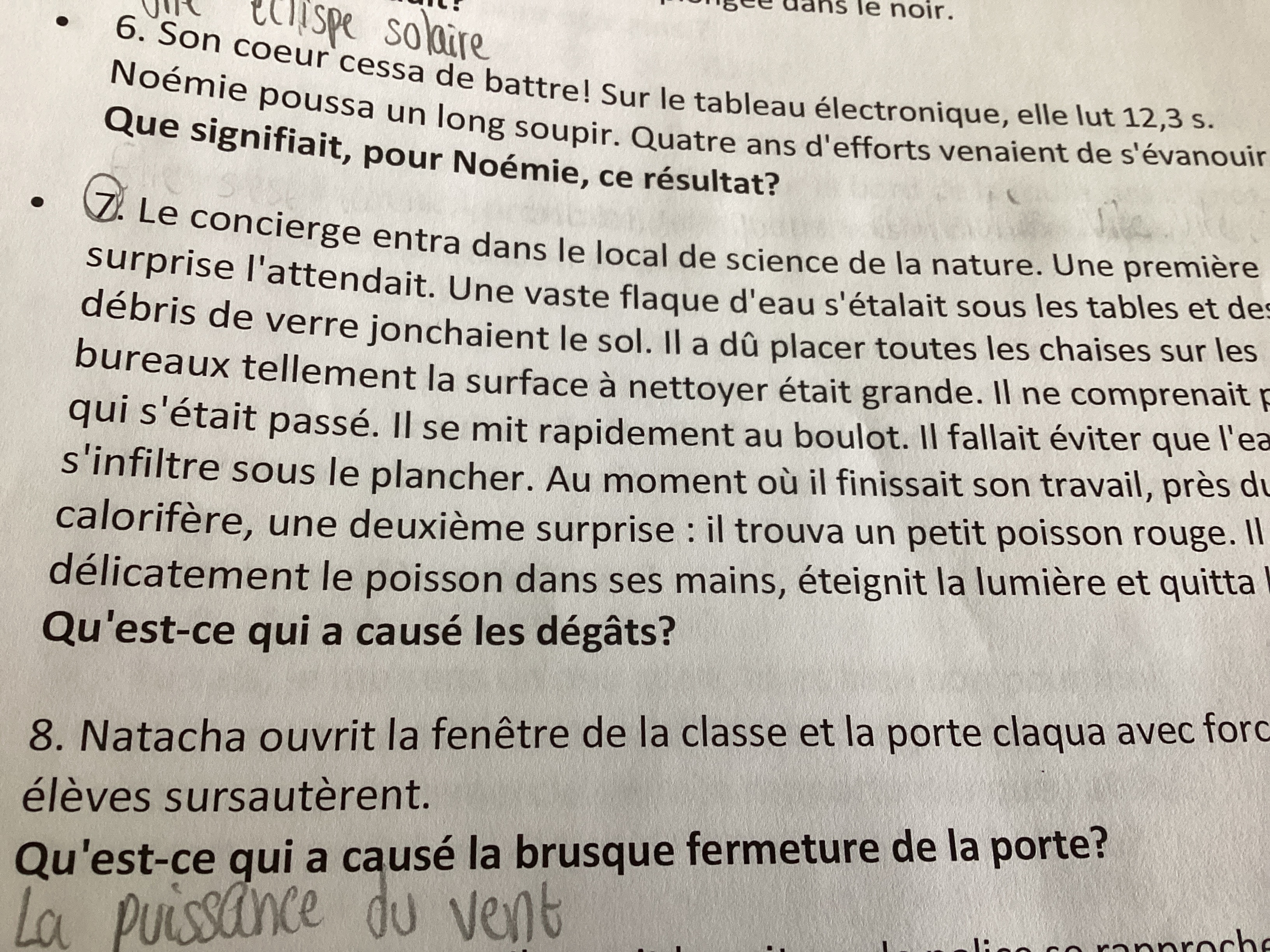 Secondaire 3 • 3aAllô, je fais une pratique d’inférences. Je ne comprends pas ces questions surlignées en jaune (1,3,4,6) . Au numéro 3 je n’ai trouvé qu’un seul lieu. Merci.